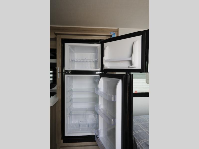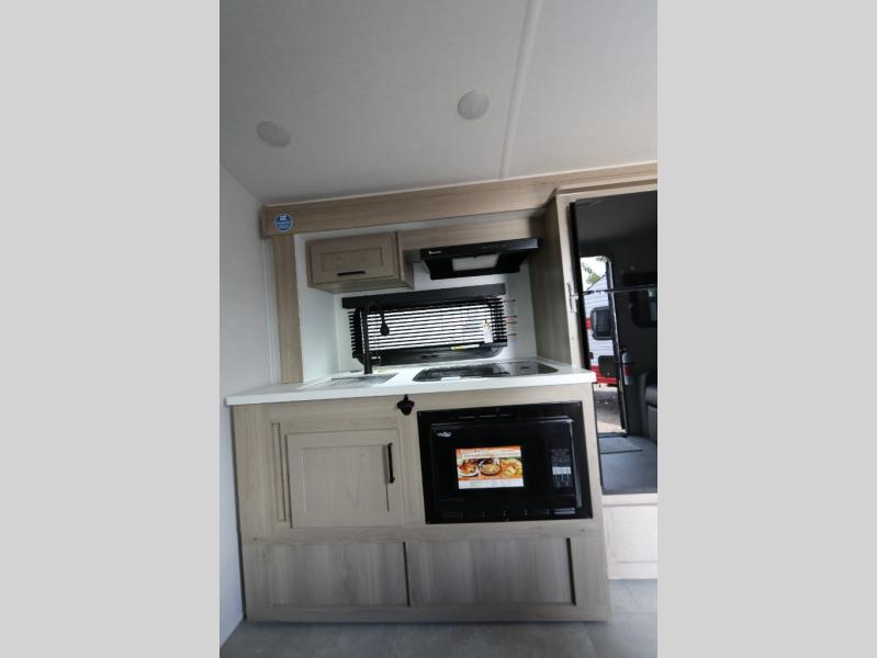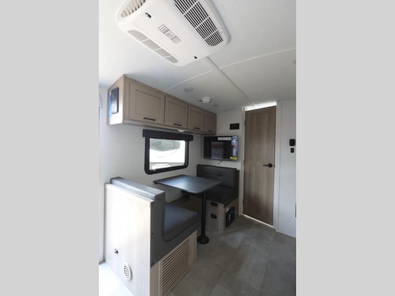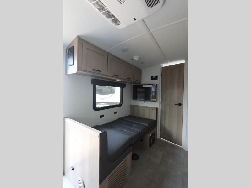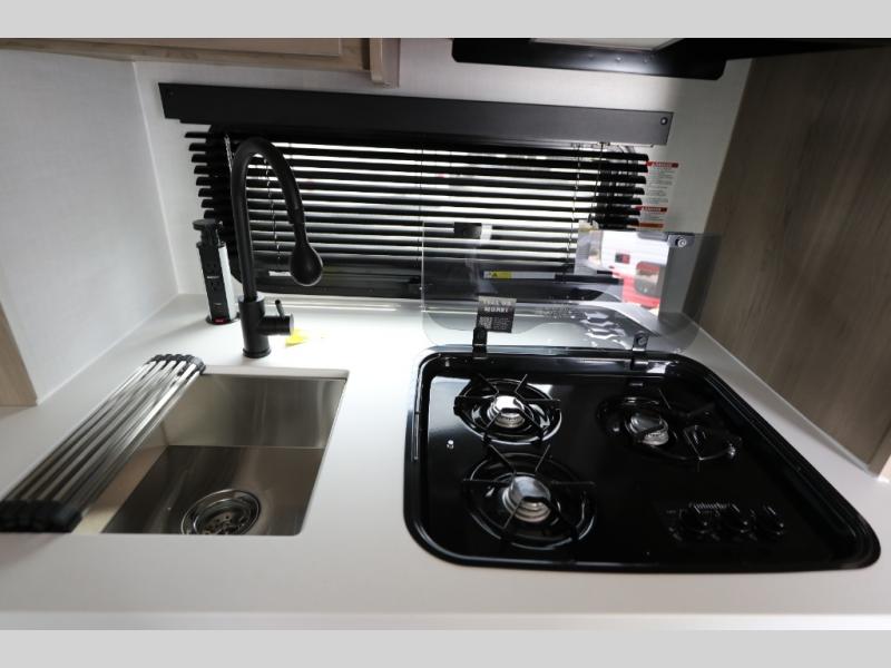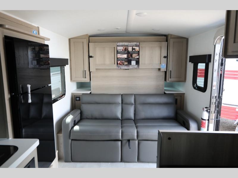 Camp with your favorite person in this trailer with the versatile Murphy bed/sofa combo up front giving you both a living area and a bedroom when you so choose. If you need sleeping space for one more, the dinette will provide that once easily setup. The large window gives you great views while dining or playing games. There is extra floor space in this trailer with the kitchen slide out that offers full amenities plus a sink to keep everything clean. And the full-length rear bathroom offers a spacious area to change your clothes in privacy and get cleaned up in the large shower.