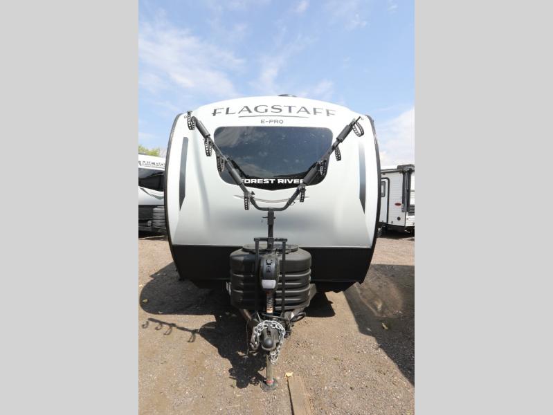 With any Flagstaff E-Pro travel trailer by Forest River, you will experience lightweight towing, style and features that will meet your needs, plus amenities that give you more than you expected! Built with interior and exterior composite sidewall construction, tongue and grove plywood flooring, and a vacuum laminated roof and walls, plus torsion axle, Rubber-Ryde suspension, and a tire pressure monitoring system for safety while traveling. And the 200 watt roof mount solar panel with 1,800-watt inverter will allow you to stay off-grid if you like. The interior offers a comfortable environment with the choice to use the air conditioner or furnace, and a 12V entertainment TV with a stereo to stay up to date on your favorite movies. Make your selection today!