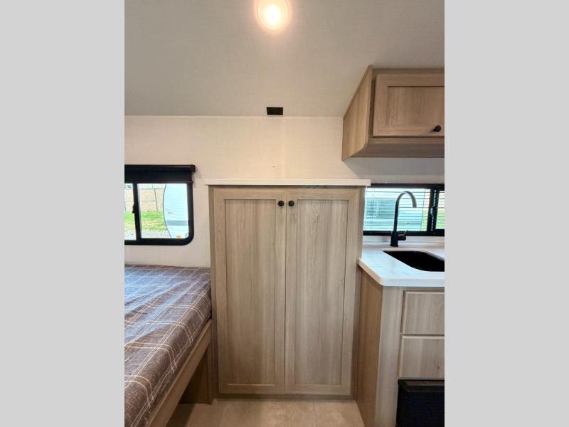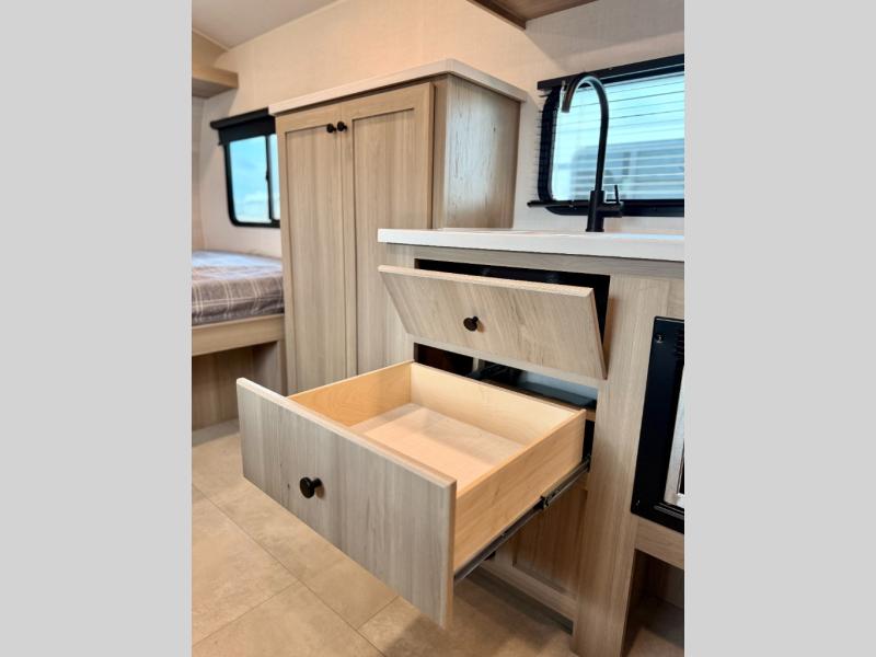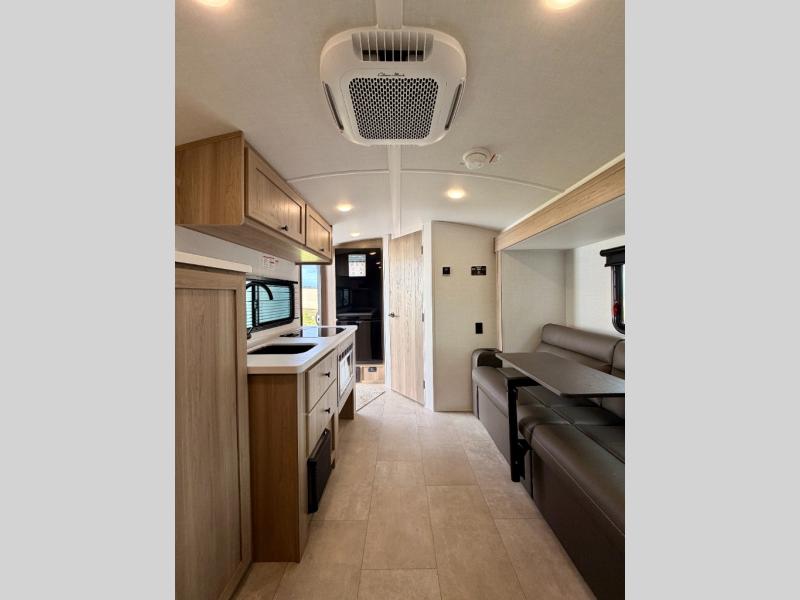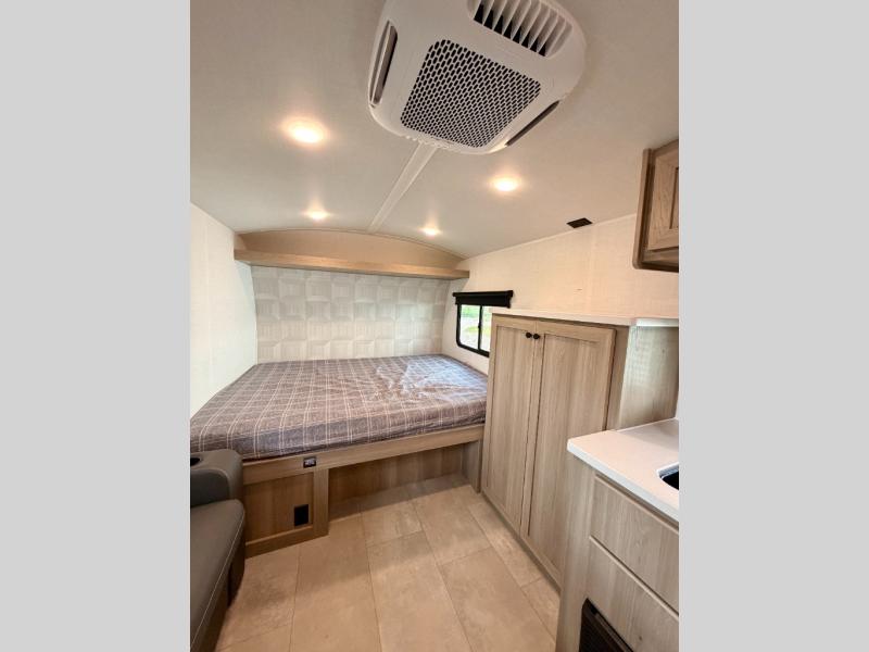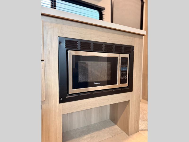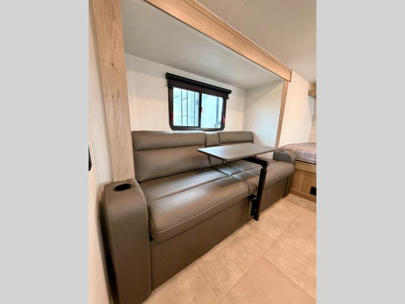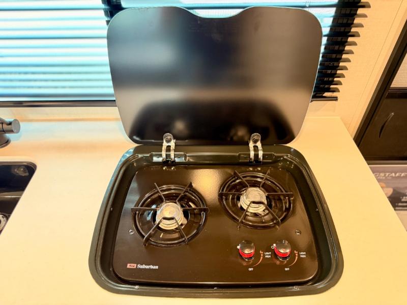 Time spent in this spacious travel trailer will be time well spent! You can wake up each morning on the front queen bed that includes an overhead shelf and a wardrobe close by, allowing you to grab some clean clothes. There is also a rear corner full dry bath, which is a comfort you won't want to camp without. A full kitchen is complete with a two-burner cooktop, microwave oven and a refrigerator, allowing you to cook and store your favorite meals. And don't overlook the sofa with a 30" x 15" table within the slide out for dining or card game space!