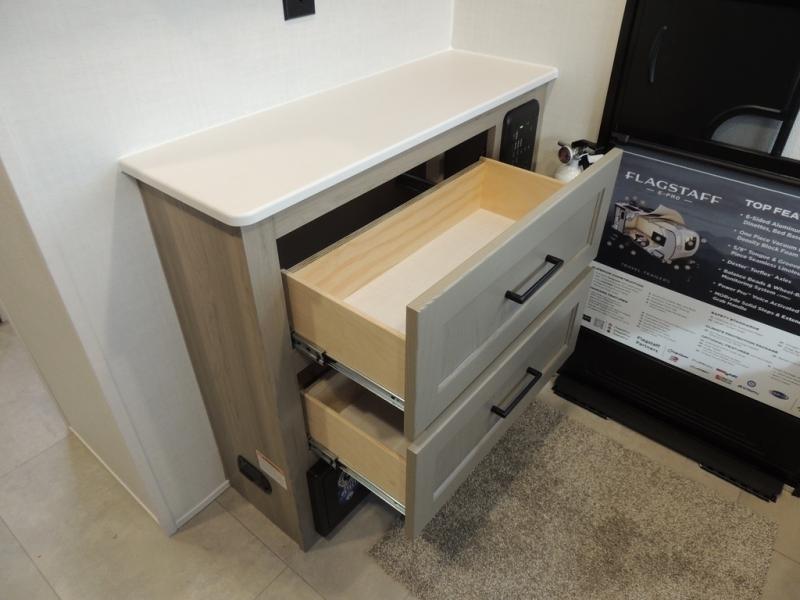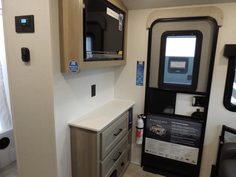 With any Flagstaff E-Pro travel trailer by Forest River, you will experience lightweight towing, style and features that will meet your needs, plus amenities that give you more than you expected! Built with interior and exterior composite sidewall construction for added strength and durability, a fully laminated roof for weather-tight protection, and aluminum truss roof bracing for enhanced stability. These trailers are equipped with Dexter leaf-spring axles for smooth towing and durable performance. The interior features an aluminum dinette, bed, and bunk, providing a strong and lightweight framework for comfortable living. Additionally, the backup camera prep ensures a safe and stress-free reversing experience. Make your selection today!