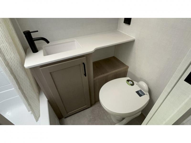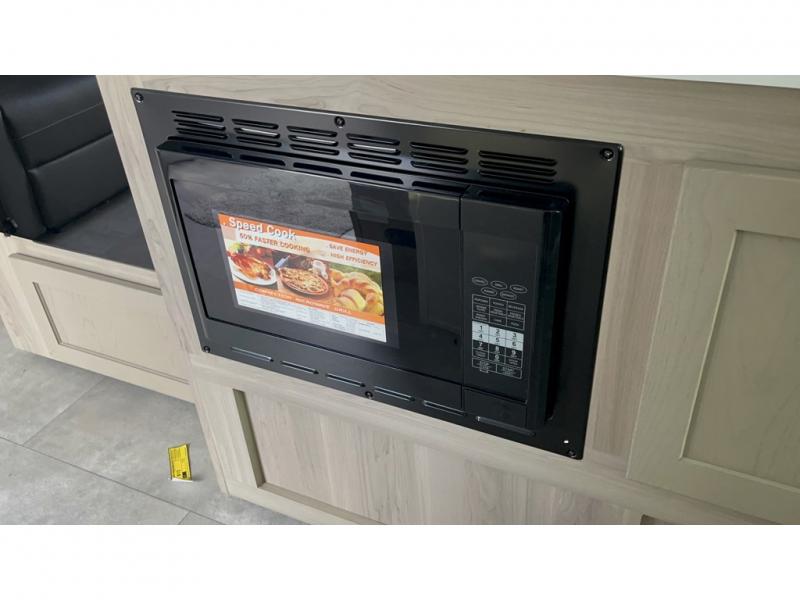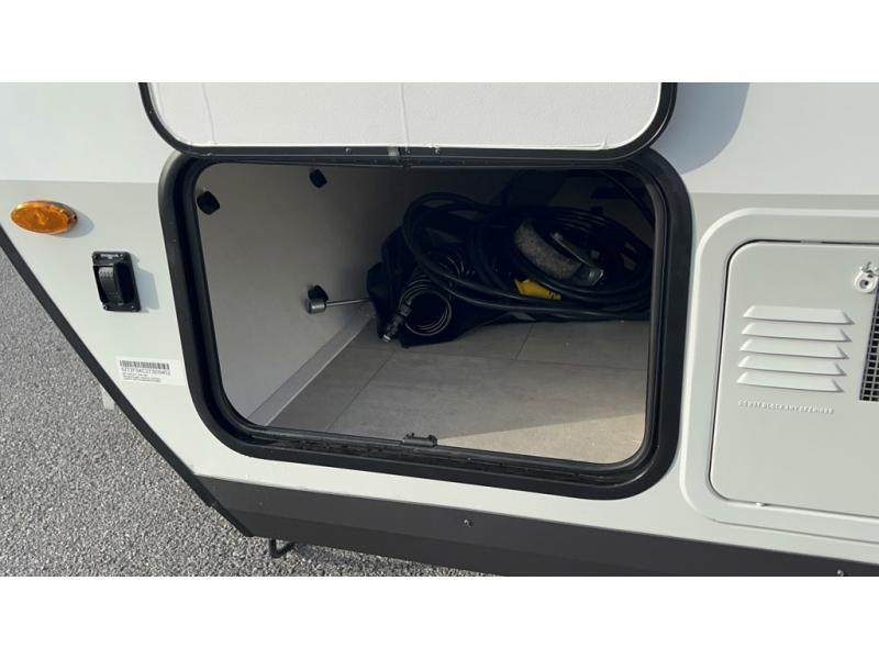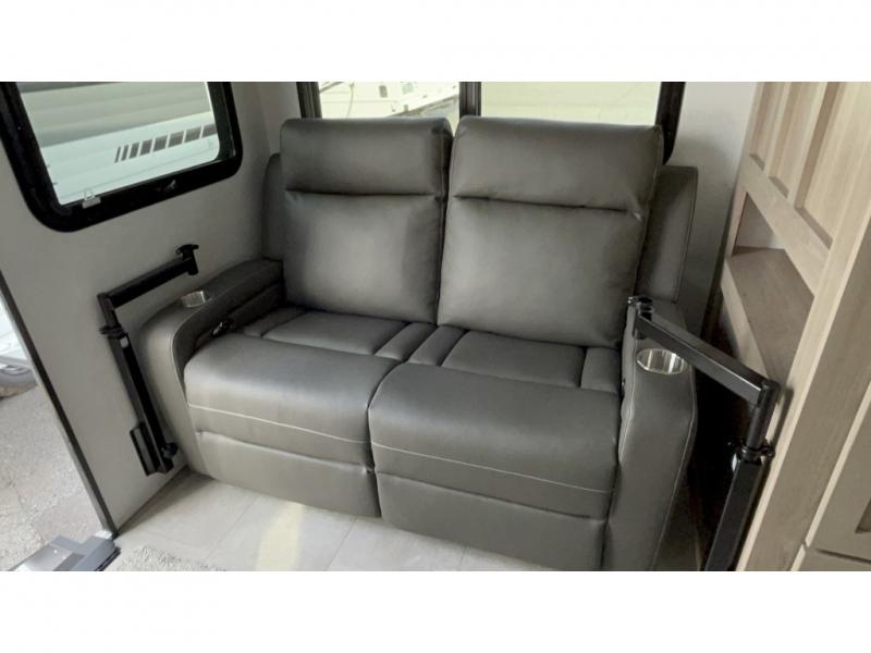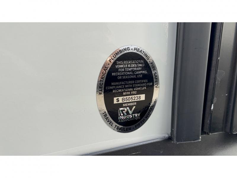 Start having unforgettable adventures with this amazing travel trailer! The queen-sized bed is the perfect spot to unwind and recharge after a day of exploring, offering a restful sleeping space that's sure to leave you feeling refreshed. The full bathroom has everything you need to refresh and rejuvenate in private. In the kitchen-living room combined area, you will find a three-burner cooktop for gourmet meals, a convection microwave for quick and easy cooking, and a spacious fridge to keep your ingredients fresh, plus overhead cabinets and a pantry/closet provide ample storage for cookware, dishes, and food. In addition, you can have endless evenings of amusement in the theater seat, which is the perfect spot to relax and enjoy your favorite shows or movies on the TV. On the outside, the exterior awning provides a shaded spot to enjoy the outdoors, while the pass-through storage offers plenty of room for gear, luggage, and equipment.