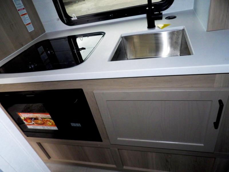 Start having unforgettable adventures with this amazing travel trailer! The queen-sized bed is the perfect spot to unwind and recharge after a day of exploring, offering a restful sleeping space that's sure to leave you feeling refreshed. The full bathroom has everything you need to refresh and rejuvenate in private. In the kitchen-living room combined area, you will find a three-burner cooktop for gourmet meals, a convection microwave for quick and easy cooking, and a spacious fridge to keep your ingredients fresh, plus overhead cabinets and a pantry/closet provide ample storage for cookware, dishes, and food. In addition, you can have endless evenings of amusement in the theater seat, which is the perfect spot to relax and enjoy your favorite shows or movies on the TV. On the outside, the exterior awning provides a shaded spot to enjoy the outdoors, while the pass-through storage offers plenty of room for gear, luggage, and equipment.