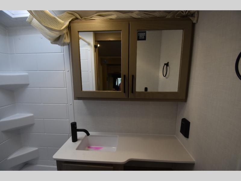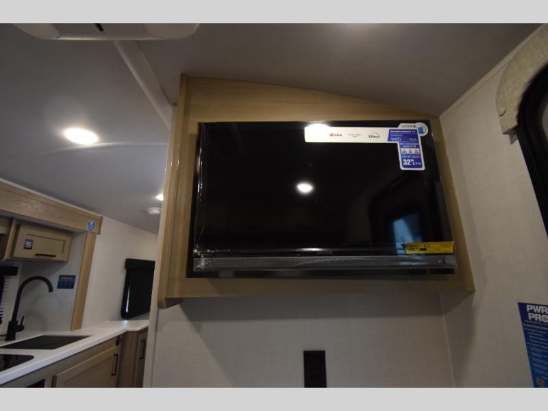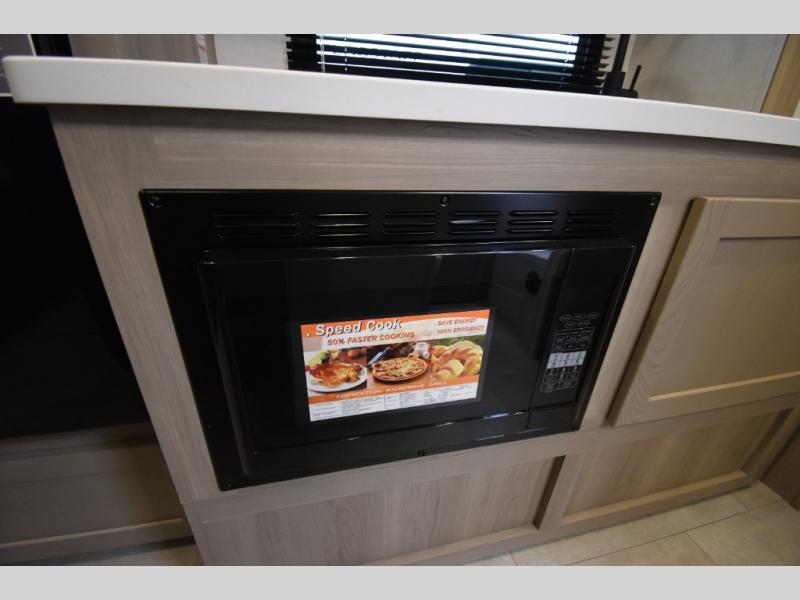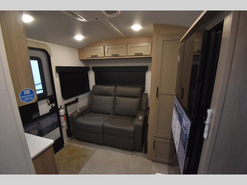 Start having unforgettable adventures with this amazing travel trailer! The queen-sized bed is the perfect spot to unwind and recharge after a day of exploring, offering a restful sleeping space that's sure to leave you feeling refreshed. The full bathroom has everything you need to refresh and rejuvenate in private. In the kitchen-living room combined area, you will find a three-burner cooktop for gourmet meals, a convection microwave for quick and easy cooking, and a spacious fridge to keep your ingredients fresh, plus overhead cabinets and a pantry/closet provide ample storage for cookware, dishes, and food. In addition, you can have endless evenings of amusement in the theater seat, which is the perfect spot to relax and enjoy your favorite shows or movies on the TV. On the outside, the exterior awning provides a shaded spot to enjoy the outdoors, while the pass-through storage offers plenty of room for gear, luggage, and equipment.