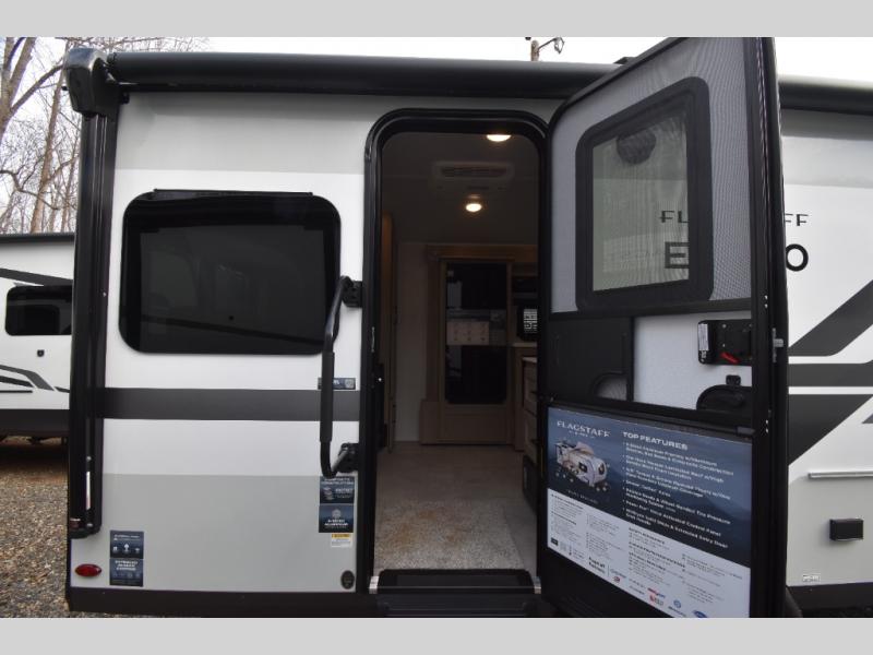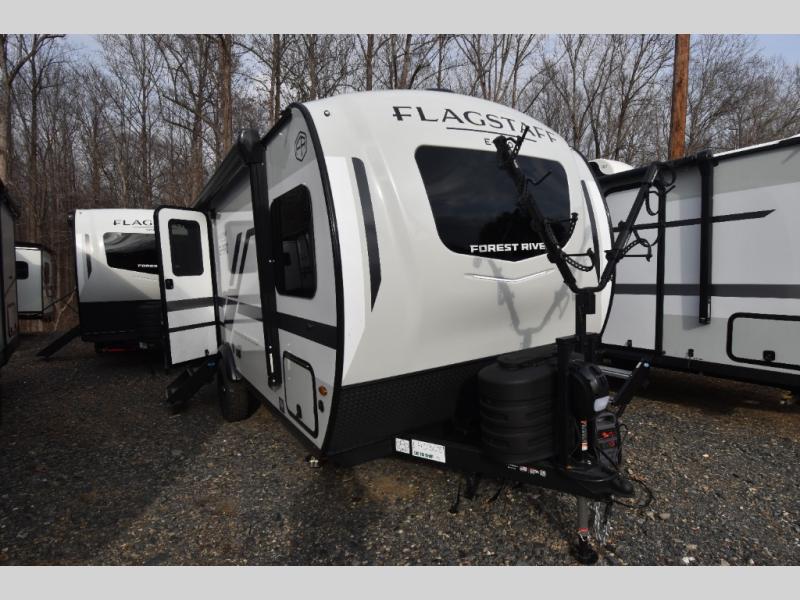 With any Flagstaff E-Pro travel trailer by Forest River, you will experience lightweight towing, style and features that will meet your needs, plus amenities that give you more than you expected! Built with interior and exterior composite sidewall construction for added strength and durability, a fully laminated roof for weather-tight protection, and aluminum truss roof bracing for enhanced stability. These trailers are equipped with Dexter leaf-spring axles for smooth towing and durable performance. The interior features an aluminum dinette, bed, and bunk, providing a strong and lightweight framework for comfortable living. Additionally, the backup camera prep ensures a safe and stress-free reversing experience. Make your selection today!