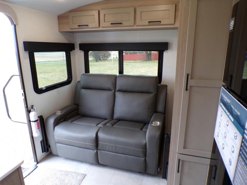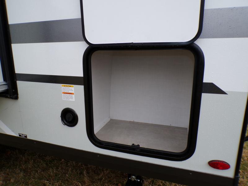 Start having unforgettable adventures with this amazing travel trailer! The queen-sized bed is the perfect spot to unwind and recharge after a day of exploring, offering a restful sleeping space that's sure to leave you feeling refreshed. The full bathroom has everything you need to refresh and rejuvenate in private. In the kitchen-living room combined area, you will find a three-burner cooktop for gourmet meals, a convection microwave for quick and easy cooking, and a spacious fridge to keep your ingredients fresh, plus overhead cabinets and a pantry/closet provide ample storage for cookware, dishes, and food. In addition, you can have endless evenings of amusement in the theater seat, which is the perfect spot to relax and enjoy your favorite shows or movies on the TV. On the outside, the exterior awning provides a shaded spot to enjoy the outdoors, while the pass-through storage offers plenty of room for gear, luggage, and equipment.