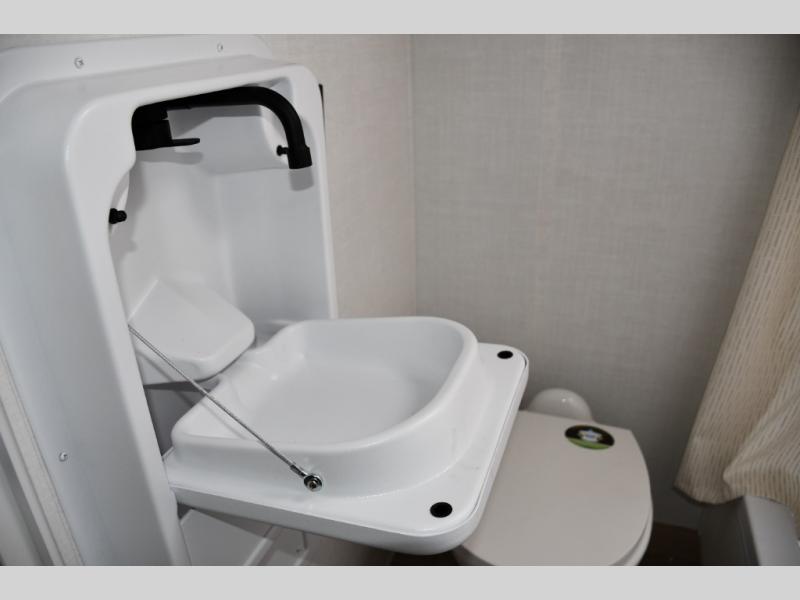Includes a flip-down lavy sink for smart space savings when not in use. -