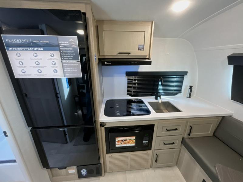 With any Flagstaff E-Pro travel trailer by Forest River, you will experience lightweight towing, style and features that will meet your needs, plus amenities that give you more than you expected! Built with interior and exterior composite sidewall construction for added strength and durability, a fully laminated roof for weather-tight protection, and aluminum truss roof bracing for enhanced stability. These trailers are equipped with Dexter leaf-spring axles for smooth towing and durable performance. The interior features an aluminum dinette, bed, and bunk, providing a strong and lightweight framework for comfortable living. Additionally, the backup camera prep ensures a safe and stress-free reversing experience. Make your selection today!