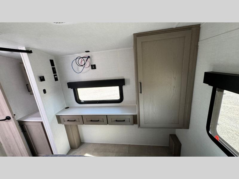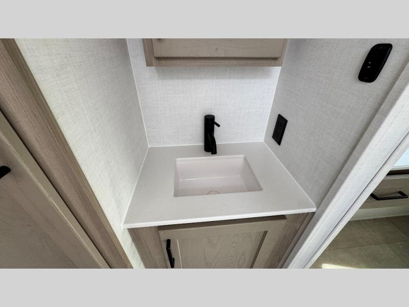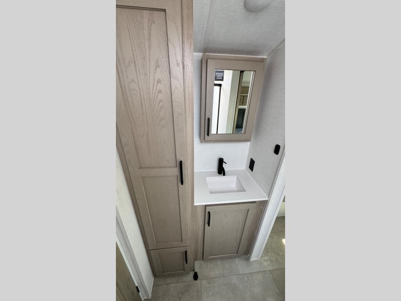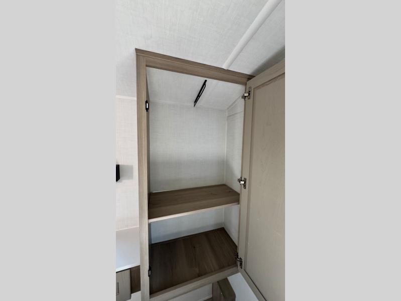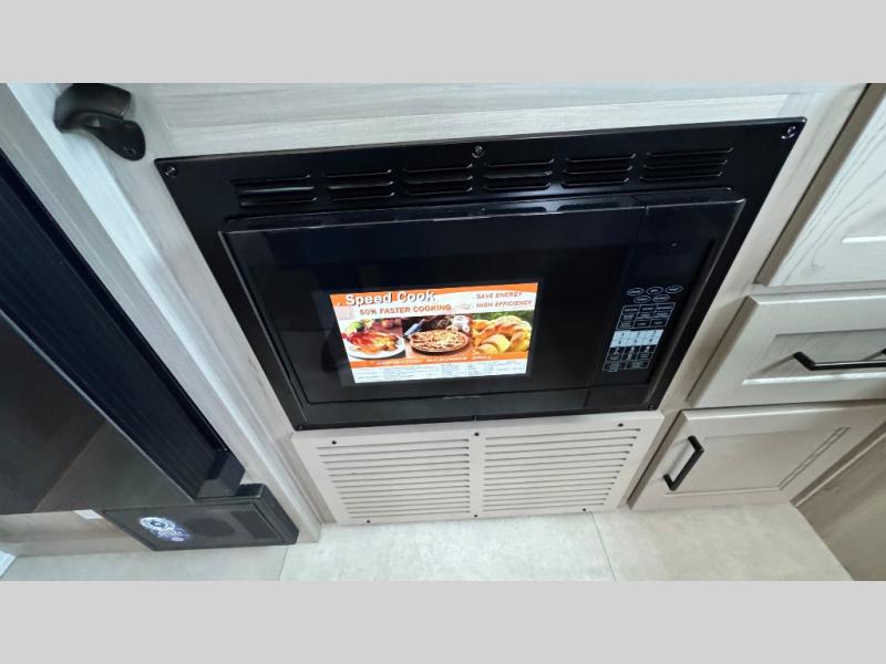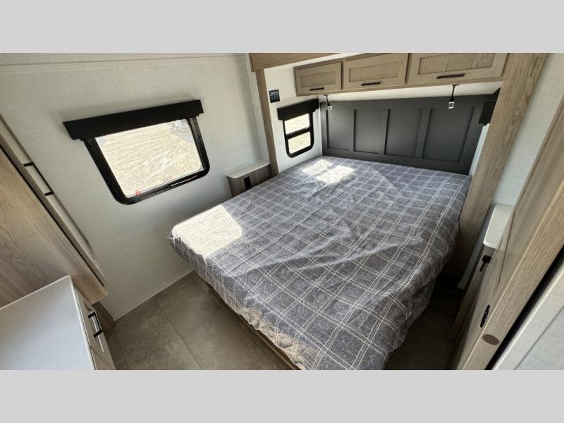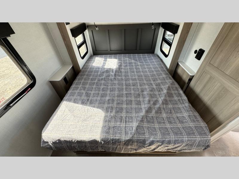 Unwind and relax in style, with plenty of storage space to keep you organized. The rear bedroom is a peaceful retreat, featuring a queen bed, spacious wardrobe, desk, and TV. The walkthrough bathroom is a practical and refreshing space, with a linen closet to keep your towels and toiletries tidy. Plus, the kitchen is equipped with a fridge, convection microwave, dinette, sink, and overhead cabinets, so you can prepare delicious meals and snacks with ease and enjoy quality time with loved ones.
