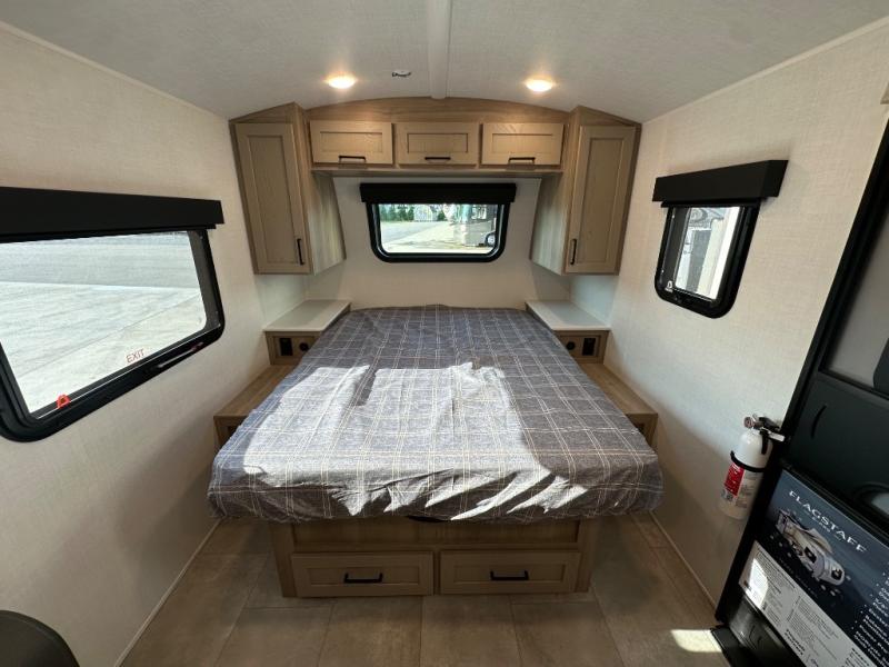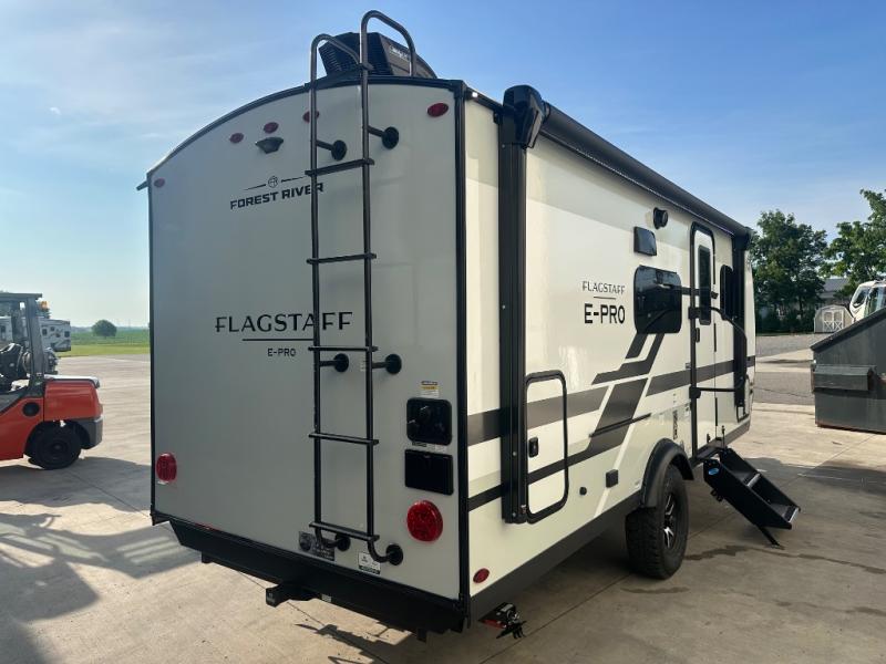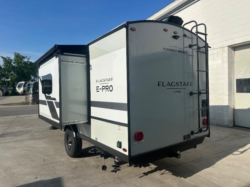 With any Flagstaff E-Pro travel trailer by Forest River, you will experience lightweight towing, style and features that will meet your needs, plus amenities that give you more than you expected! Built with interior and exterior composite sidewall construction, tongue and grove plywood flooring, and a vacuum laminated roof and walls, plus torsion axle, Rubber-Ryde suspension, and a tire pressure monitoring system for safety while traveling. And the 200 watt roof mount solar panel with 1,800-watt inverter will allow you to stay off-grid if you like. The interior offers a comfortable environment with the choice to use the air conditioner or furnace, and a 12V entertainment TV with a stereo to stay up to date on your favorite movies. Make your selection today!