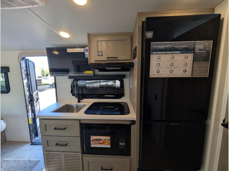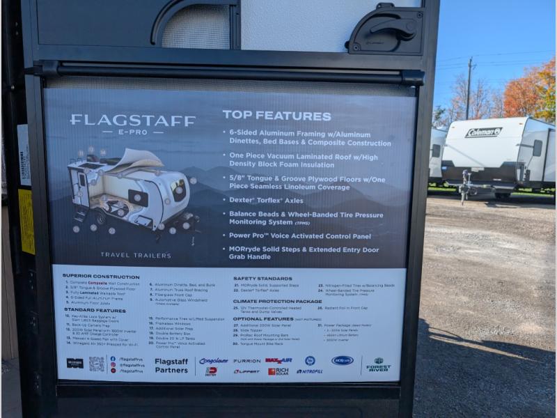 With any Flagstaff E-Pro travel trailer by Forest River, you will experience lightweight towing, style and features that will meet your needs, plus amenities that give you more than you expected! Built with interior and exterior composite sidewall construction for added strength and durability, a fully laminated roof for weather-tight protection, and aluminum truss roof bracing for enhanced stability. These trailers are equipped with Dexter leaf-spring axles for smooth towing and durable performance. The interior features an aluminum dinette, bed, and bunk, providing a strong and lightweight framework for comfortable living. Additionally, the backup camera prep ensures a safe and stress-free reversing experience. Make your selection today!