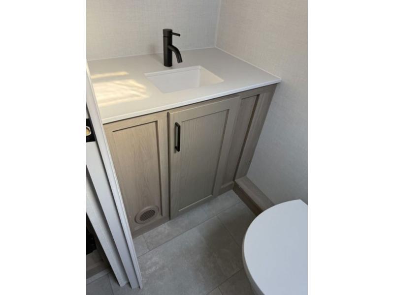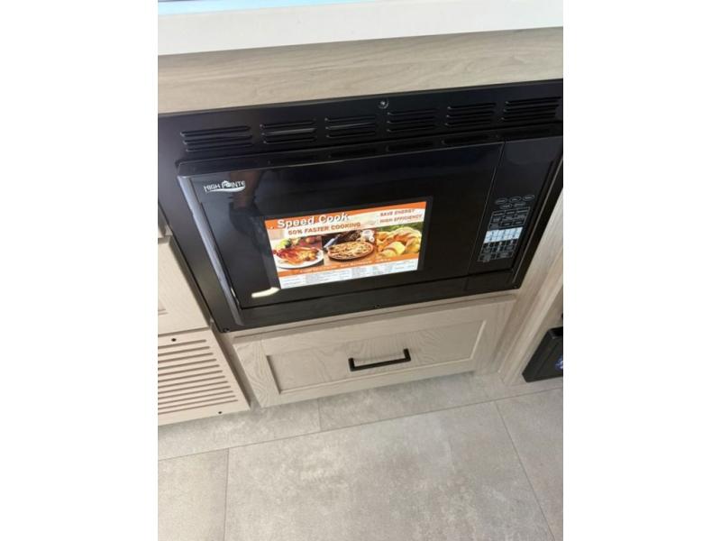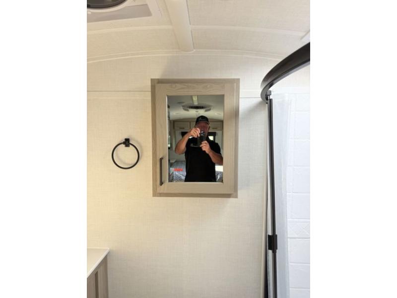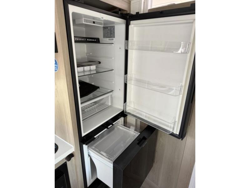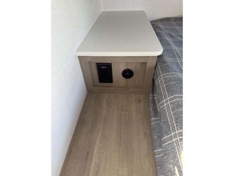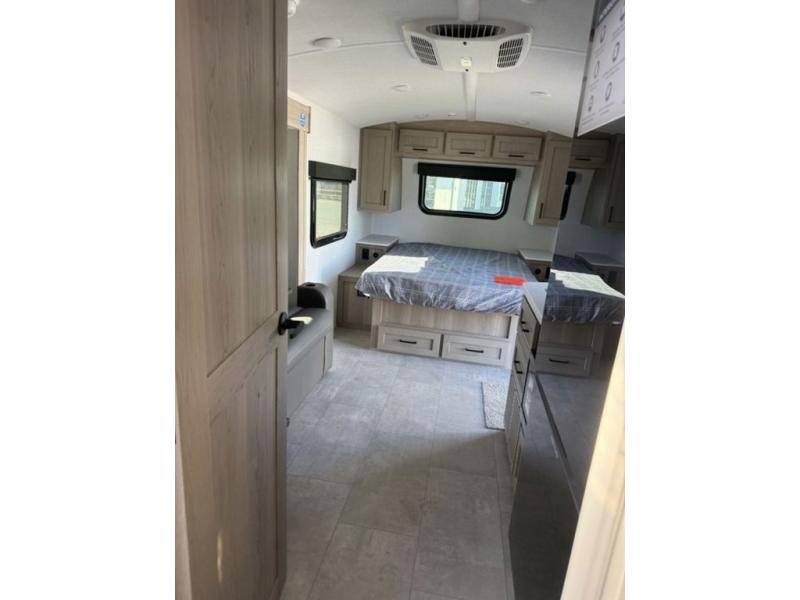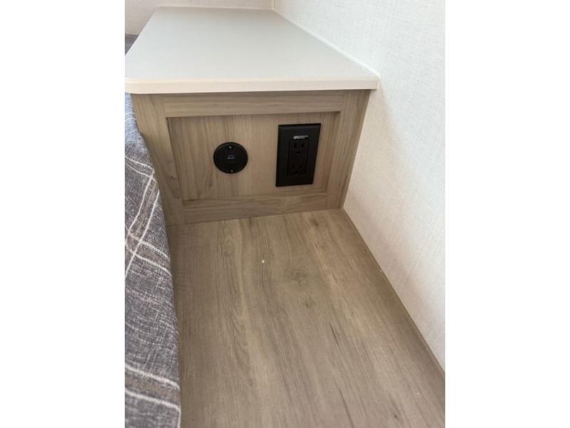 Get ready for a spacious and comfortable trip in this trailer, plus you will have a convenient rear full bathroom with an oversized shower and linen storage to utilize instead of using the campground's facilities. The walk-around full bed gives you two sides with wardrobes to claim as your own. And the kitchen offers full amenities to make meals, and the outside griddle gives you even more choices when cooking. You can relax, dine, or even work from the slide out sofa with a 30" x 15" table and watch the 32" TV. You will find storage along the exterior for your outdoor gear, plus a 14' power awning.