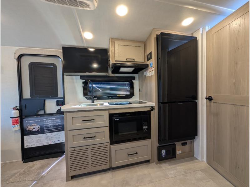 With any Flagstaff E-Pro travel trailer by Forest River, you will experience lightweight towing, style and features that will meet your needs, plus amenities that give you more than you expected! Built with interior and exterior composite sidewall construction for added strength and durability, a fully laminated roof for weather-tight protection, and aluminum truss roof bracing for enhanced stability. These trailers are equipped with Dexter leaf-spring axles for smooth towing and durable performance. The interior features an aluminum dinette, bed, and bunk, providing a strong and lightweight framework for comfortable living. Additionally, the backup camera prep ensures a safe and stress-free reversing experience. Make your selection today!