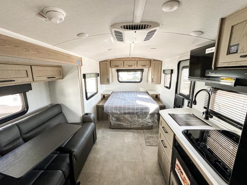 With any Flagstaff E-Pro travel trailer by Forest River, you will experience lightweight towing, style and features that will meet your needs, plus amenities that give you more than you expected! Built with interior and exterior composite sidewall construction for added strength and durability, a fully laminated roof for weather-tight protection, and aluminum truss roof bracing for enhanced stability. These trailers are equipped with Dexter leaf-spring axles for smooth towing and durable performance. The interior features an aluminum dinette, bed, and bunk, providing a strong and lightweight framework for comfortable living. Additionally, the backup camera prep ensures a safe and stress-free reversing experience. Make your selection today!