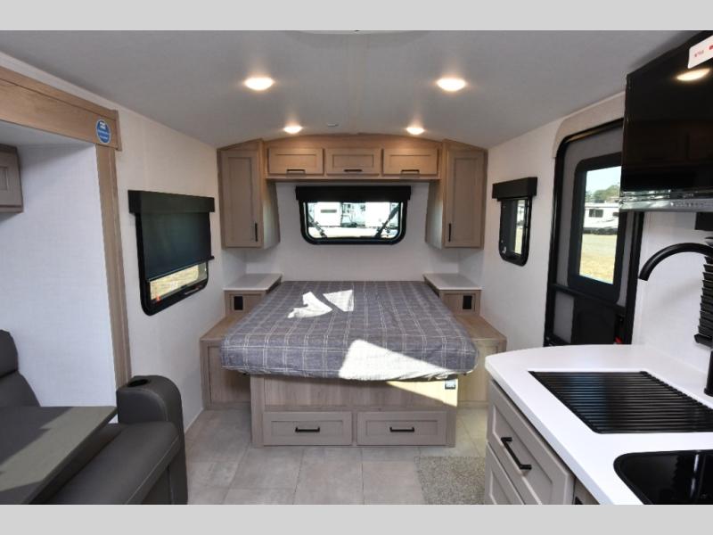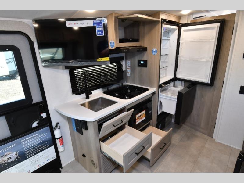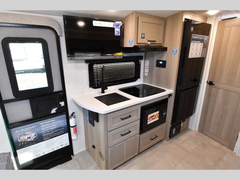 The 2026 Flagstaff E-Pro E20FBS delivers smart design and comfortable living in a lightweight, adventure-ready package. Inside, the walk-around bed with dual wardrobes creates a private and practical sleeping space, while the slide-out sofa offers room to relax, dine, or work on the road. The kitchen is fully equipped for easy meal prep, and the rear full bathroom features an oversized shower and linen storage—perfect for staying refreshed without relying on campground facilities.