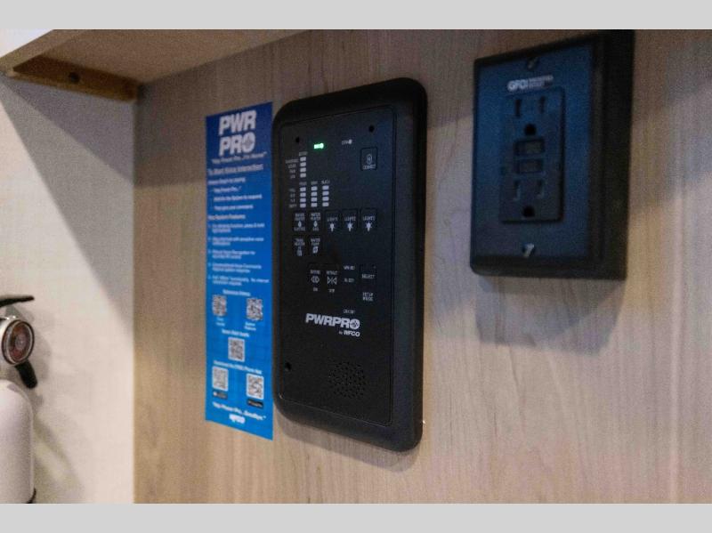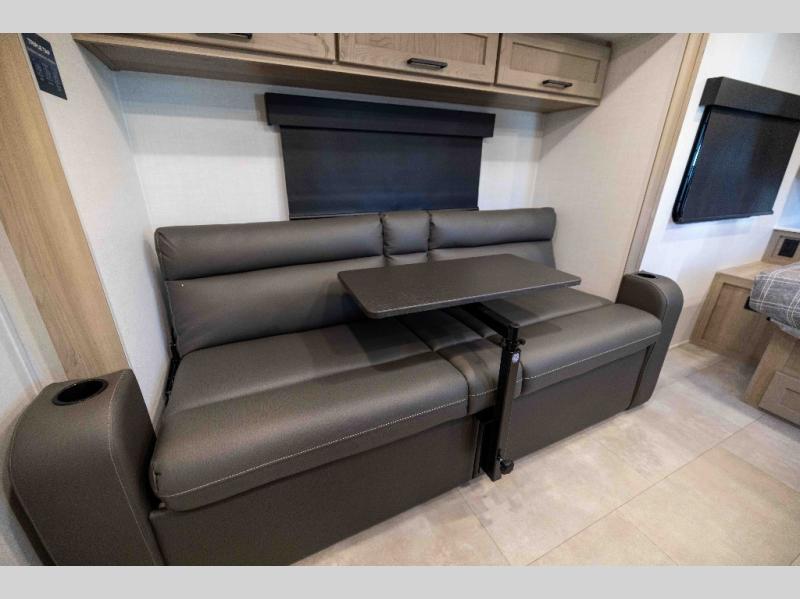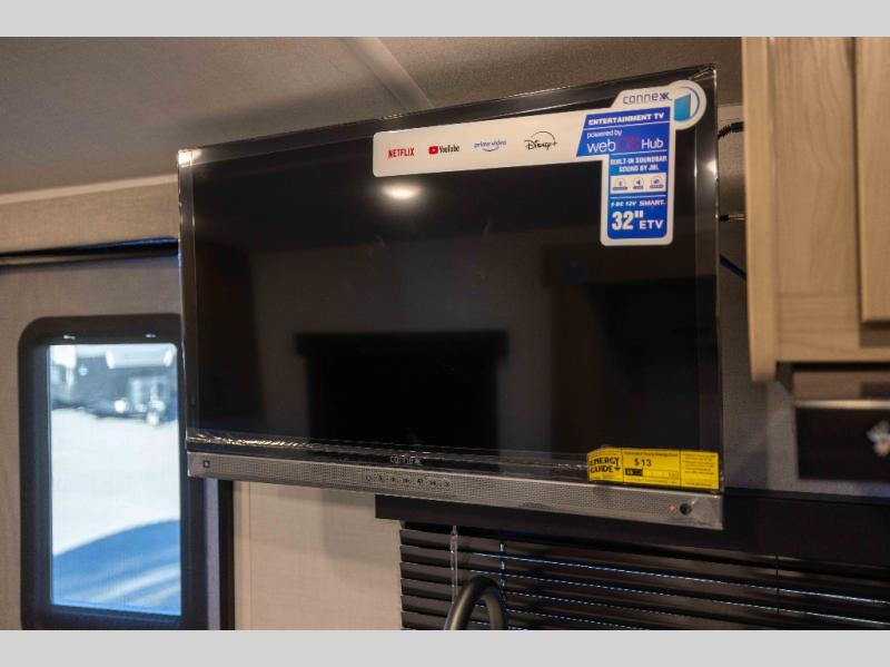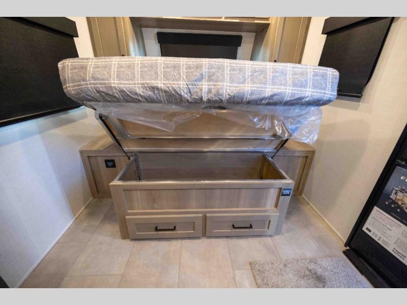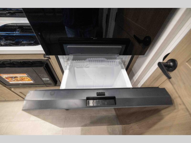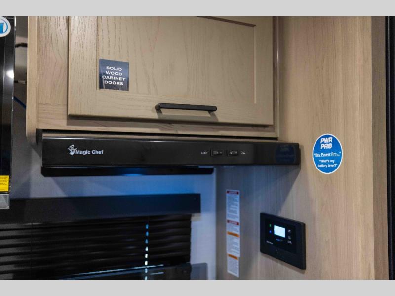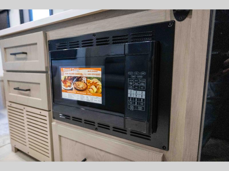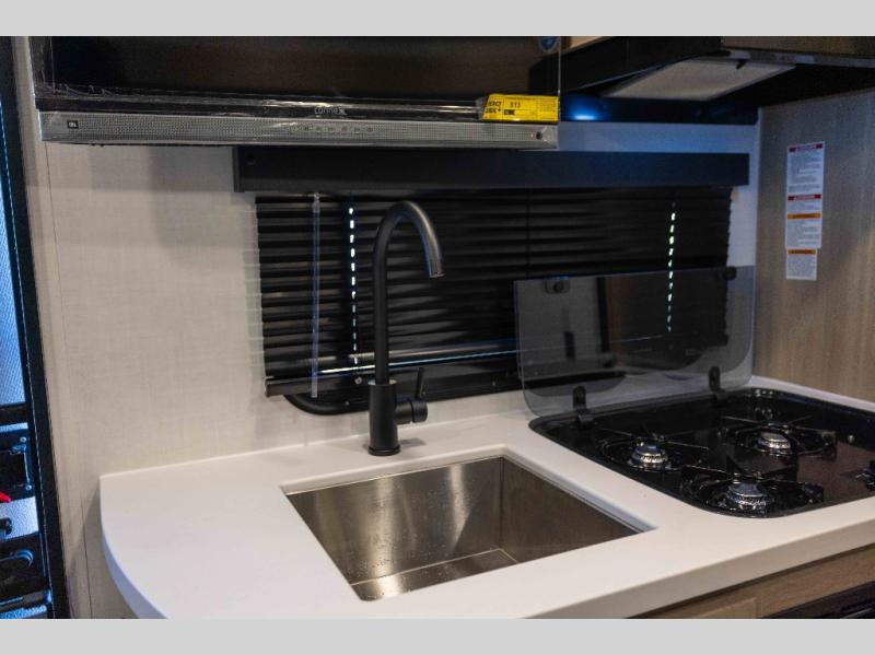 Get ready for a spacious and comfortable trip in this trailer, plus you will have a convenient rear full bathroom with an oversized shower and linen storage to utilize instead of using the campground's facilities. The walk-around full bed gives you two sides with wardrobes to claim as your own. And the kitchen offers full amenities to make meals. You can relax, dine, or even work from the slide out sofa with a 30" x 15" table and watch the TV. You will find storage along the exterior for your outdoor gear, plus a 14' power awning.