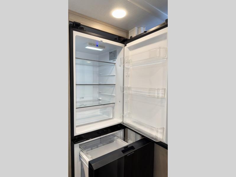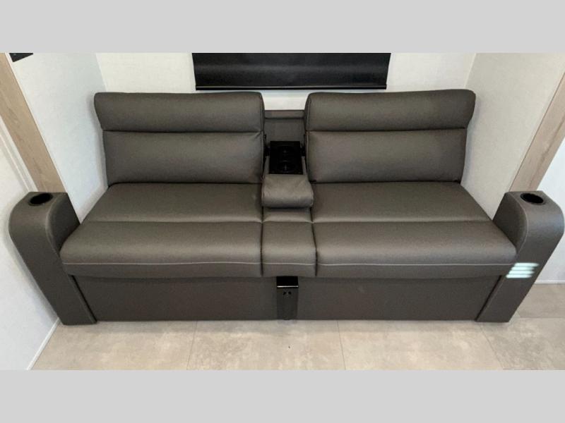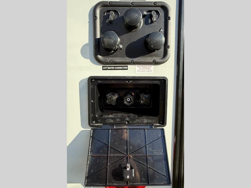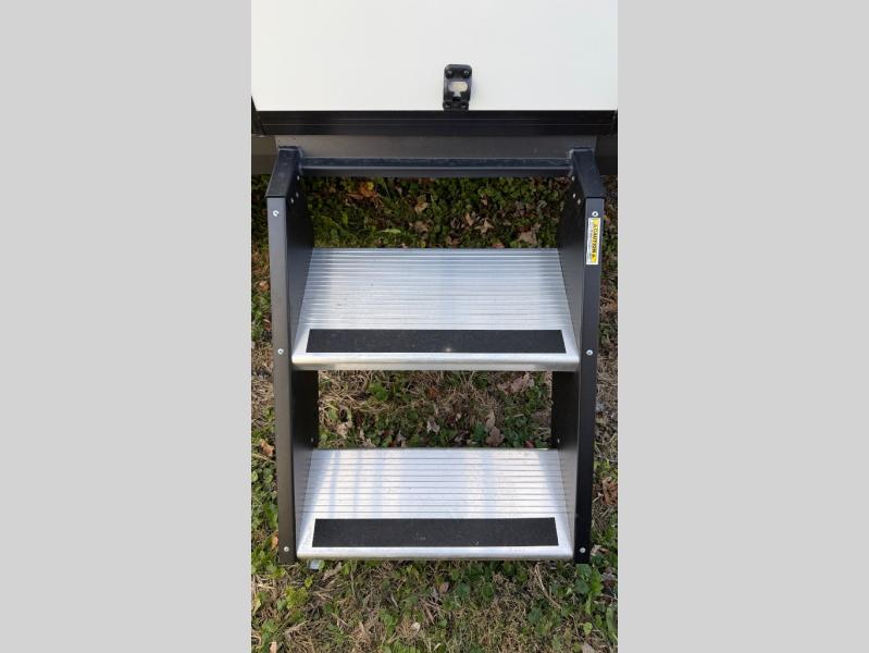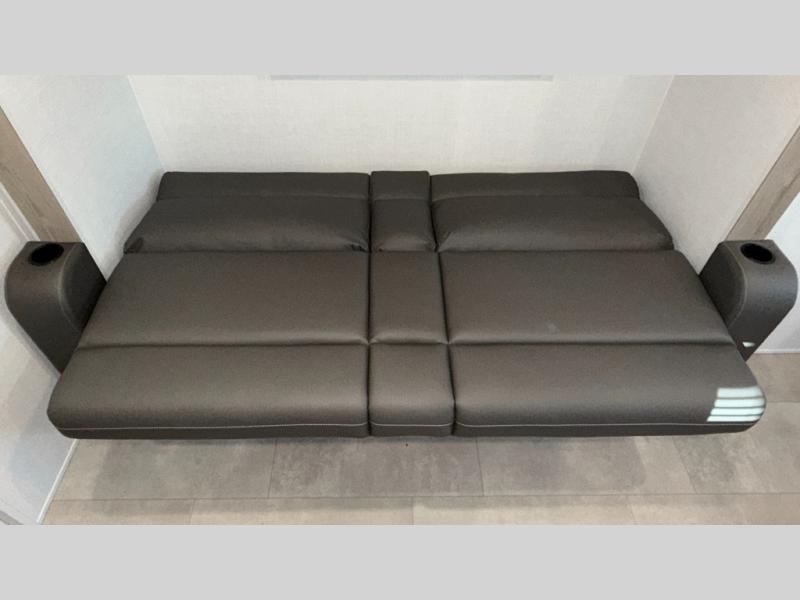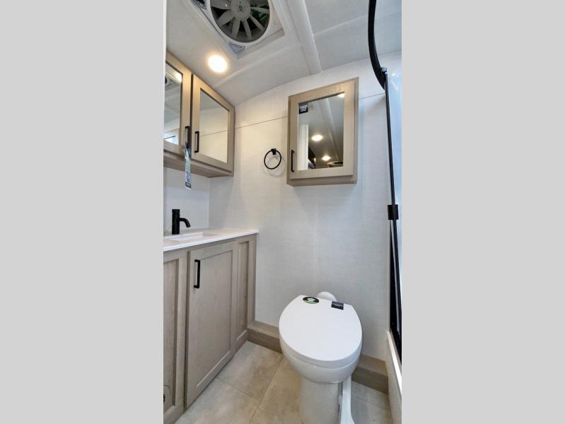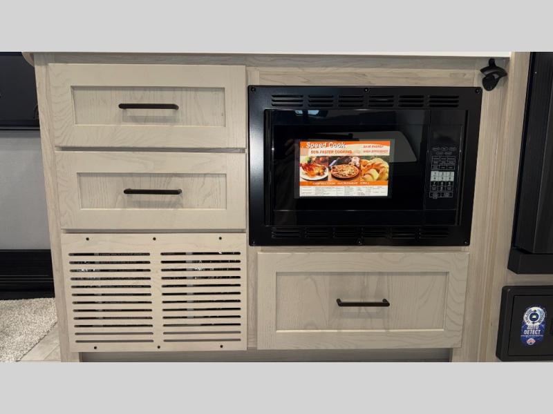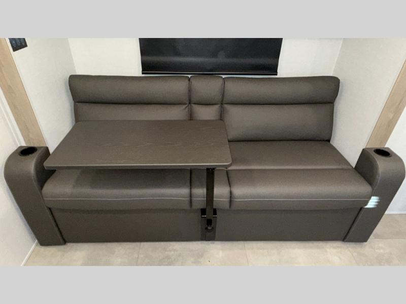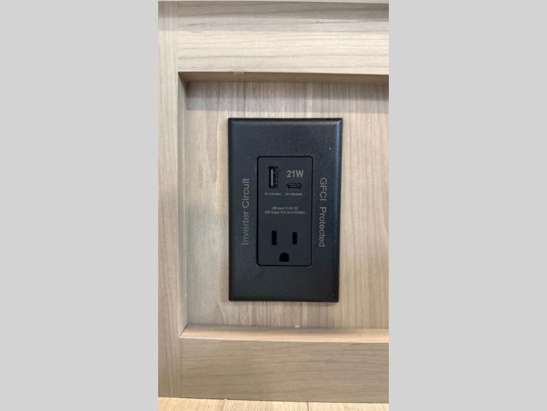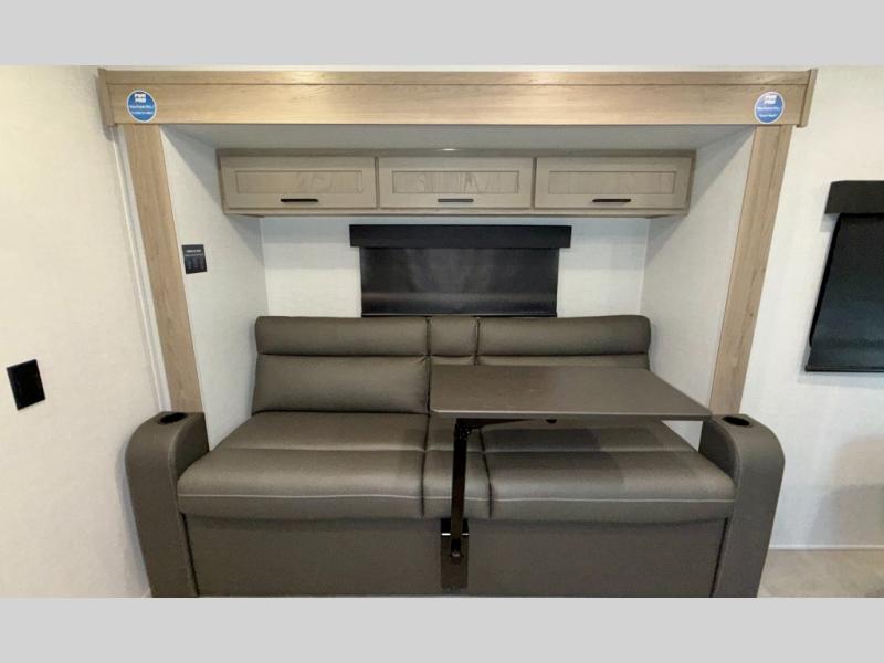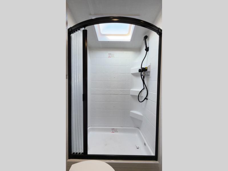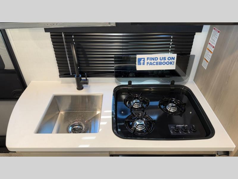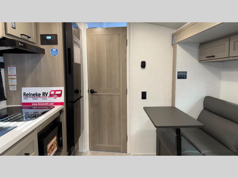Get ready for a spacious and comfortable trip in this trailer, plus you will have a convenient rear full bathroom with an oversized shower and linen storage to utilize instead of using the campground's facilities. The walk-around full bed gives you two sides with wardrobes to claim as your own. And the kitchen offers full amenities to make meals. You can relax, dine, or even work from the slide out sofa with a 30" x 15" table and watch the TV. You will find storage along the exterior for your outdoor gear, plus a 14' power awning.