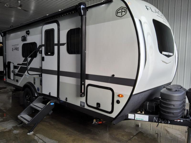 With any Flagstaff E-Pro travel trailer by Forest River, you will experience lightweight towing, style and features that will meet your needs, plus amenities that give you more than you expected! Built with interior and exterior composite sidewall construction for added strength and durability, a fully laminated roof for weather-tight protection, and aluminum truss roof bracing for enhanced stability. These trailers are equipped with Dexter leaf-spring axles for smooth towing and durable performance. The interior features an aluminum dinette, bed, and bunk, providing a strong and lightweight framework for comfortable living. Additionally, the backup camera prep ensures a safe and stress-free reversing experience. Make your selection today!