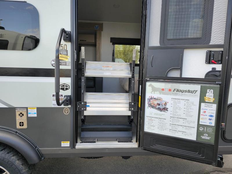 With any Flagstaff E-Pro travel trailer by Forest River, you will experience lightweight towing, style and features that will meet your needs, plus amenities that give you more than you expected! Built with interior and exterior composite sidewall construction for added strength and durability, a fully laminated roof for weather-tight protection, and aluminum truss roof bracing for enhanced stability. These trailers are equipped with Dexter leaf-spring axles for smooth towing and durable performance. The interior features an aluminum dinette, bed, and bunk, providing a strong and lightweight framework for comfortable living. Additionally, the backup camera prep ensures a safe and stress-free reversing experience. Make your selection today!