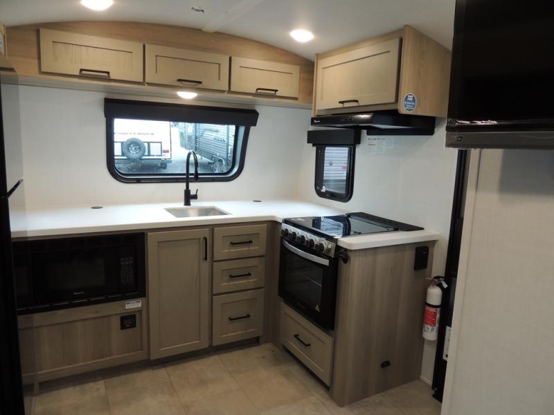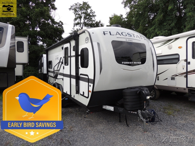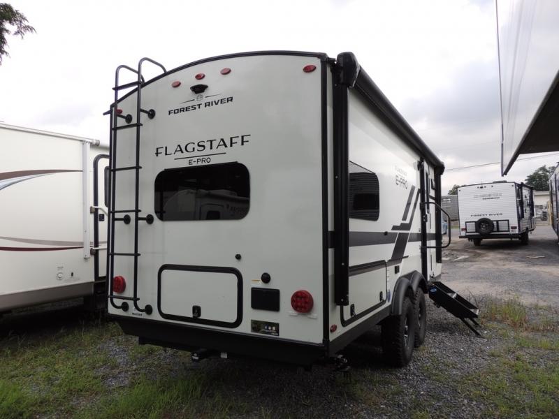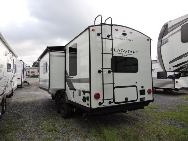 With any Flagstaff E-Pro travel trailer by Forest River, you will experience lightweight towing, style and features that will meet your needs, plus amenities that give you more than you expected! Built with interior and exterior composite sidewall construction, tongue and grove plywood flooring, and a vacuum laminated roof and walls, plus torsion axle, Rubber-Ryde suspension, and a tire pressure monitoring system for safety while traveling. And the 200 watt roof mount solar panel with 1,800-watt inverter will allow you to stay off-grid if you like. The interior offers a comfortable environment with the choice to use the air conditioner or furnace, and a 12V entertainment TV with a stereo to stay up to date on your favorite movies. Make your selection today!