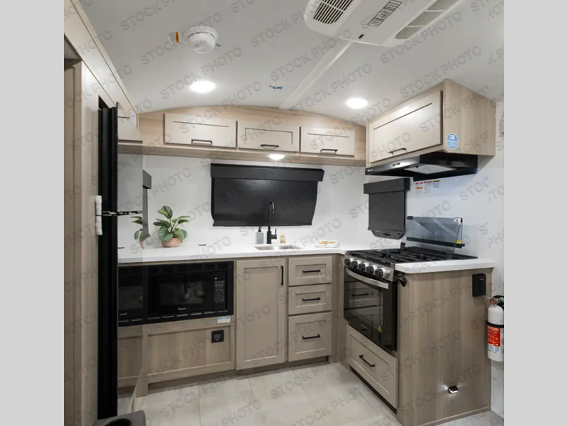 The chef will love cooking in the front kitchen of this travel trailer! It offers plenty of countertop space to meal prep and all of the essentials to cook delicious meals, plus there is even an outside kitchen with a refrigerator, a pull-out stove, and a griddle to fry what you caught that day. Enjoy all of your meals at the 72" sofa slide with a table or pull up a table and chairs under the 15' power awning. The queen bed offers a comfortable place for you to rest up each night and it even has a 26" x 80" flip-up bunk above it for a guest or two to tag along. Store all of your camping essentials in the exterior storage.