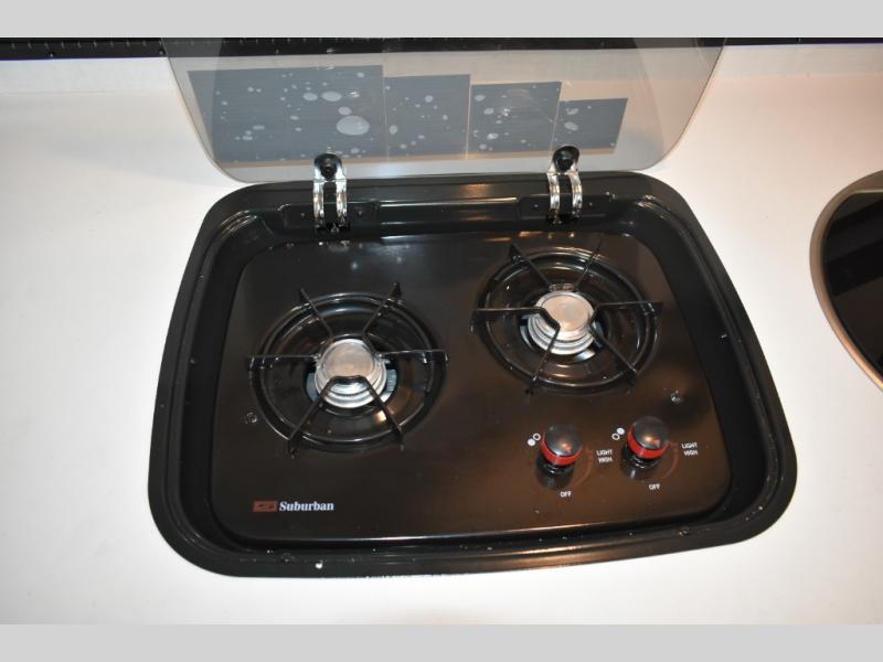 What a treat it will be to spend a weekend in this Flagstaff Hard Side A-frame! You will be able to create some more interior living space by repositioning the flip-up bed after you wake up, and the couch dinette can also maneuver out of a bed and back into a dining space easily. There is also a two burner range that can be used to fry up a hearty batch of pancakes without even starting a fire.