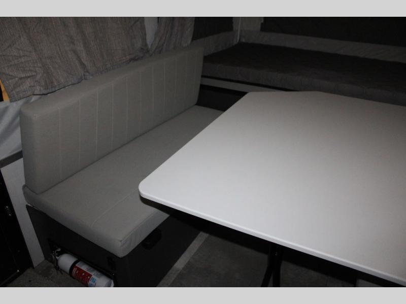 With any Flagstaff OTG (Off The Ground) folding pop-up camper by Forest River, you will enjoy a more simple approach to outdoor fun. If you're a regular tent camper, but are looking for a little more comfort, then take a look at these easy-to-tow models! There are electric brakes, balancing bead filled tires, and leaf spring axles that provide that easy towing, and the alloy fiberglass exterior is sure to be eye-catching. A one-piece screen door also comes standard so you can let fresh air in, while keeping bugs out, and the LED interior lights will be an added benefit you didn't have while tent camping. Each model also includes residential style cabinet doors, wood look flooring, and an Andover Sable wood interior for a more outdoorsy feel!