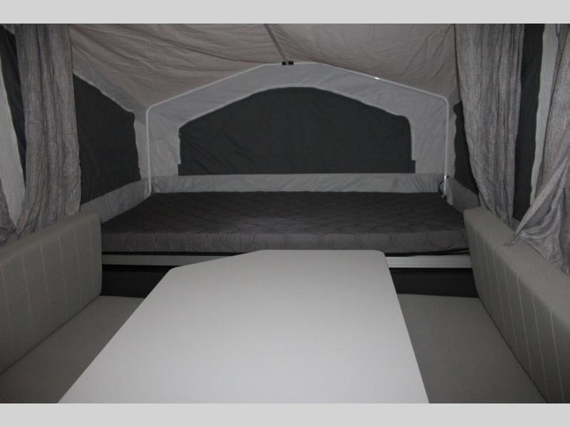 You're going to love camping in this lightweight camper for five to six. There is a 54" x 78" bed and a 42" x 78" bed for cozy sleeping space, and the booth dinette can even be transformed into another bed at night if you need it. You will also appreciate the quilted mattress for added comfort and privacy curtains when you need to change at night.
