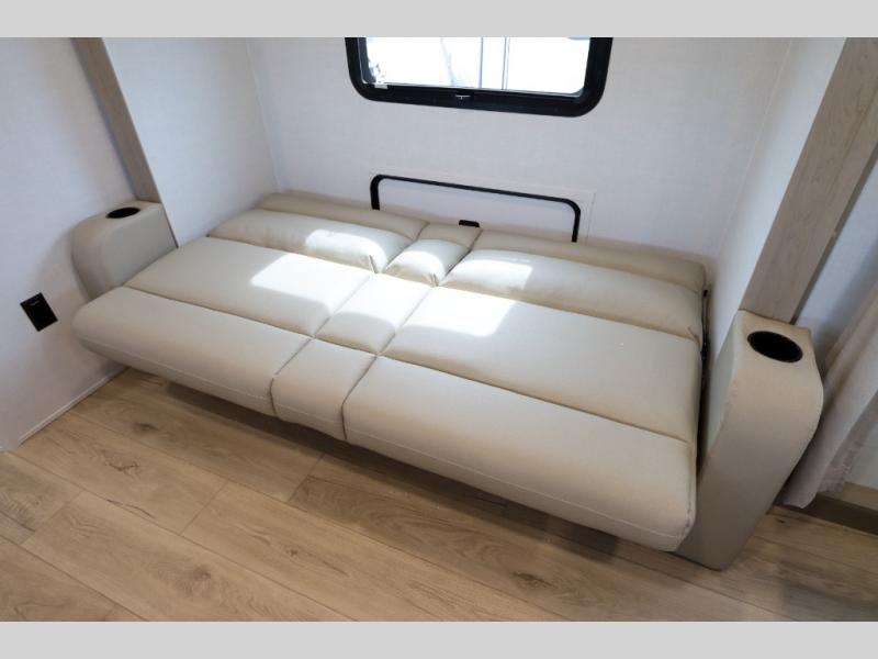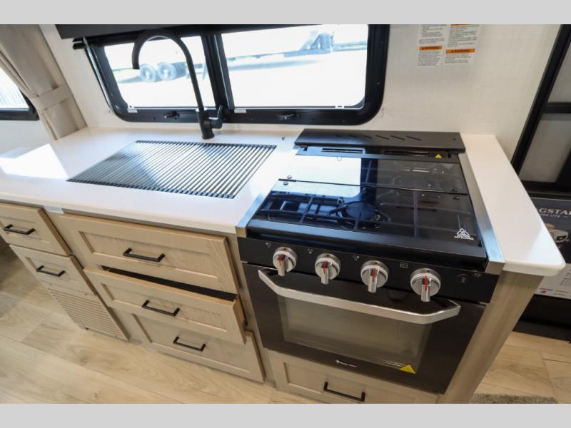 For the couple who is ready to get out and enjoy nature, this Flagstaff Micro Lite travel trailer is ideal for you! This unit has all of the basic amenities, like a rear corner bath with a radius shower, and a front RV queen bed that makes for a comfy night's rest. There is also flip-up storage under the bed to keep luggage, board games, and more! The slide out with the 72" sofa provides extra interior space so that you won't feel cramped. You'll also be able to enjoy your meals here with a table in front of the sofa. After swimming all day working up your appetite, come back to this unit and cook a meal on the three-burner cooktop! This travel trailer features a pass-through storage for your larger camping items, plus an exterior storage to hold the kids' outdoor games and an exterior griddle for breakfast outdoors.