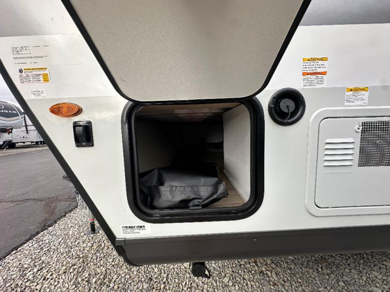 For the couple who is ready to get out and enjoy nature, this Flagstaff Micro Lite travel trailer is ideal for you! This unit has all of the basic amenities, like a rear corner bath with a radius shower, and a front RV queen bed that makes for a comfy night's rest. There is also flip-up storage under the bed to keep luggage, board games, and more! The slide out with the 72" sofa provides extra interior space so that you won't feel cramped. You'll also be able to enjoy your meals here with a table in front of the sofa. After swimming all day working up your appetite, come back to this unit and cook a meal on the three-burner cooktop! This travel trailer features a pass-through storage for your larger camping items, plus an exterior storage to hold the kids' outdoor games.