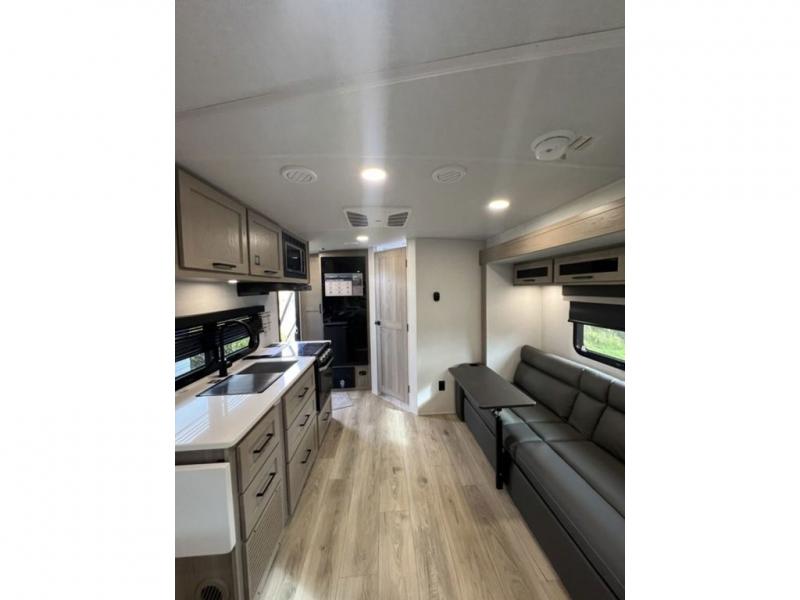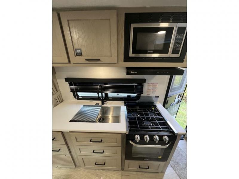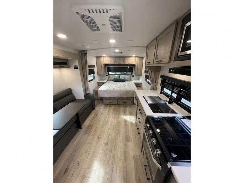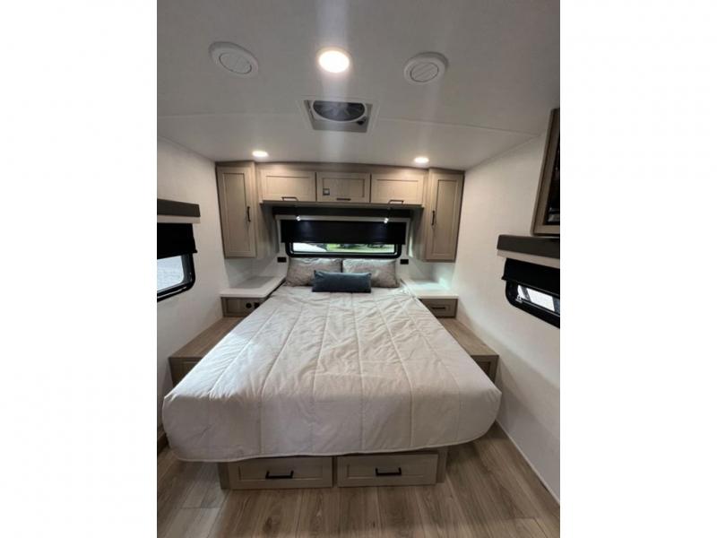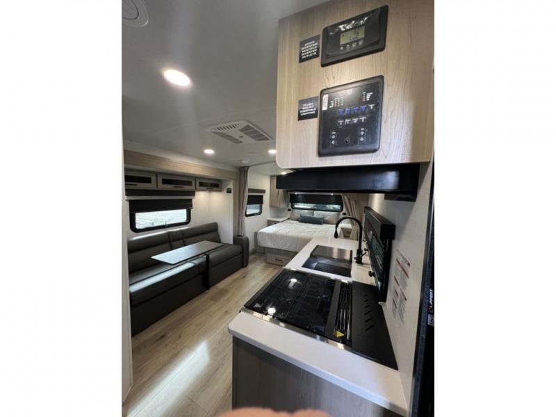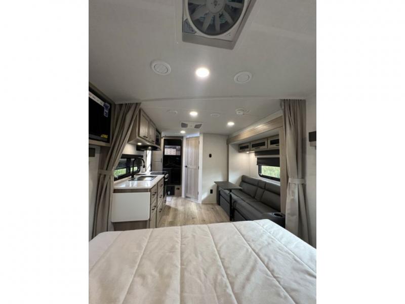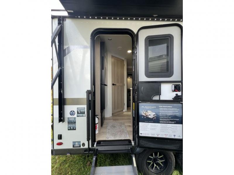 With any Flagstaff Micro Lite travel trailer by Forest River you will enjoy lightweight towing, durable construction, and added interior comforts to make each trip memorable! Each model features RoadTech tire pressure monitoring, Dexter Torflex axles, and nitrogen-filled Goodyear endurance tires for smooth towing from home to campground. The 6-sided aluminum framed construction provides a strong foundation so you can enjoy your RV for years to come, plus the radiant foil in the front cap, underbelly and slides help insulate your trailer. Additional exterior features include a 200W solar panel, back-up camera prep, frameless windows, and slam baggage doors. Each model includes the Great Expectations Package with roller shades, solid surface kitchen countertops, and hidden hinge cabinet doors. There is also an exterior hot/cold water port, outside speakers, a power tongue jack and stabilizer jacks, plus many more conveniences.