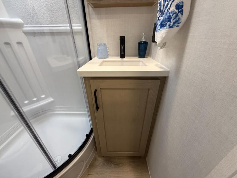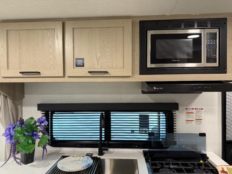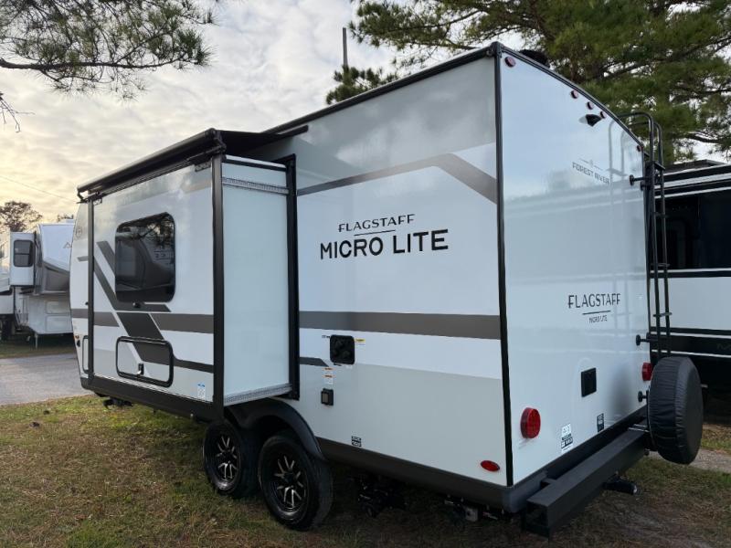 With any Flagstaff Micro Lite travel trailer by Forest River you will enjoy lightweight towing, durable construction, and added interior comforts to make each trip memorable! Each model features RoadTech tire pressure monitoring, Dexter Torflex axles, and nitrogen-filled Goodyear endurance tires for smooth towing from home to campground. The 6-sided aluminum framed construction provides a strong foundation so you can enjoy your RV for years to come, plus the radiant foil in the front cap, underbelly and slides help insulate your trailer. Additional exterior features include a 200W solar panel, back-up camera prep, frameless windows, and slam baggage doors. Each model includes the Great Expectations Package with roller shades, solid surface kitchen countertops, and hidden hinge cabinet doors. There is also an exterior hot/cold water port, outside speakers, a power tongue jack and stabilizer jacks, plus many more conveniences.