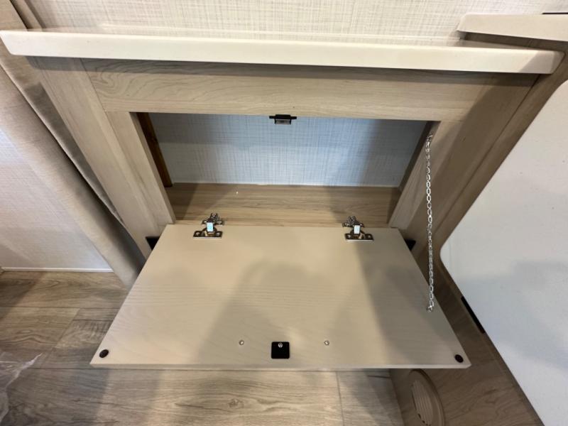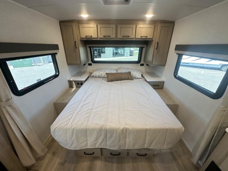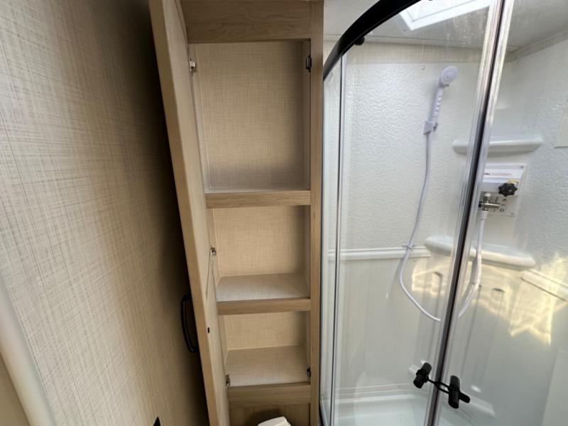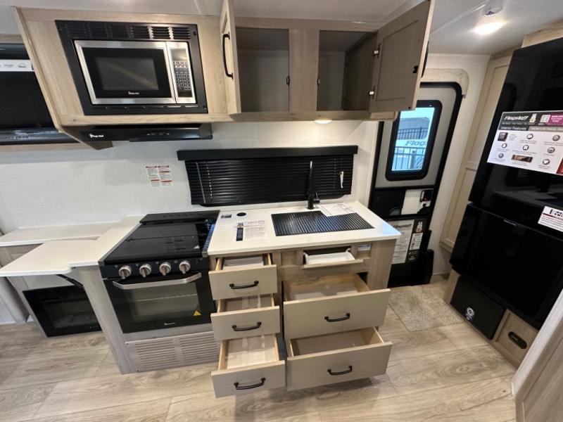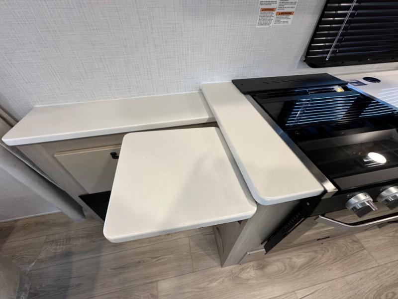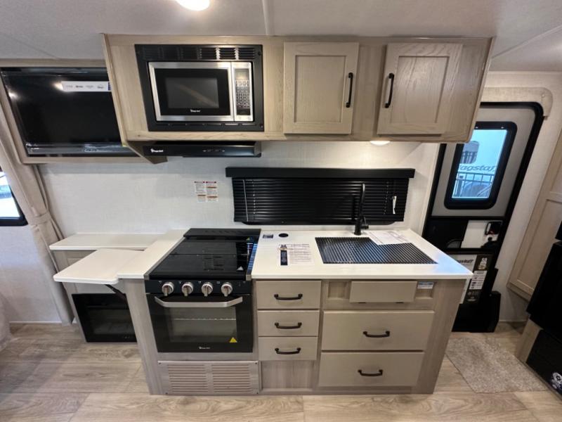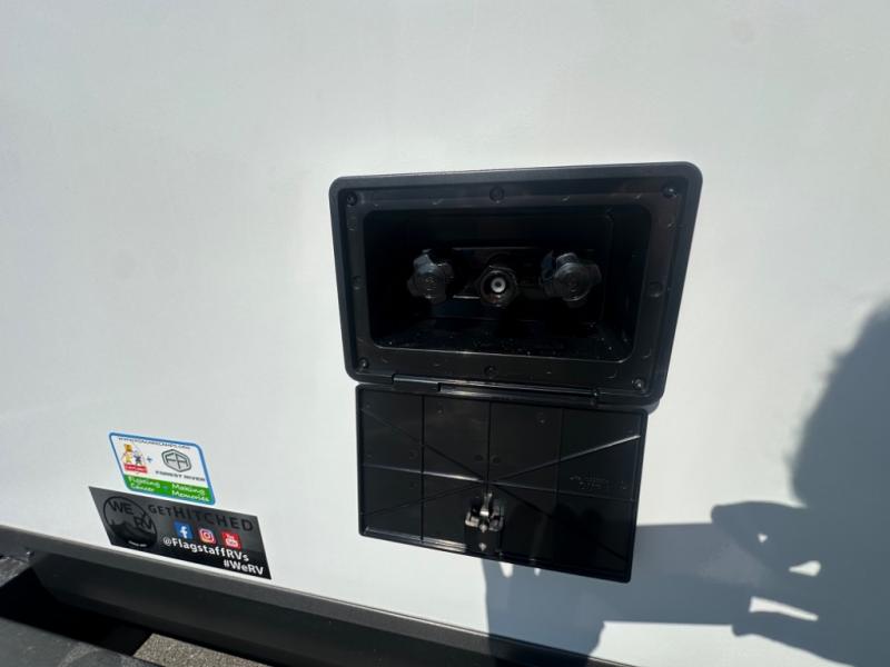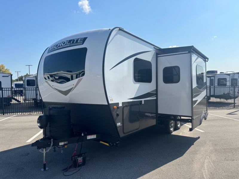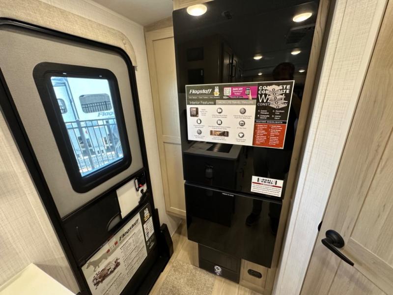 With any Flagstaff Micro Lite travel trailer by Forest River you will enjoy lightweight towing, durable construction, and added interior comforts to make each trip memorable! Each model features RoadTech tire pressure monitoring, Dexter Torflex axles, and nitrogen-filled Goodyear endurance tires for smooth towing from home to campground. The 6-sided aluminum framed construction provides a strong foundation so you can enjoy your RV for years to come, plus the radiant foil in the front cap, underbelly and slides help insulate your trailer. Additional exterior features include a 200W solar panel, back-up camera prep, frameless windows, and slam baggage doors. Each model includes the Great Expectations Package with roller shades, solid surface kitchen countertops, and hidden hinge cabinet doors. There is also an exterior hot/cold water port, outside speakers, a power tongue jack and stabilizer jacks, plus many more conveniences.