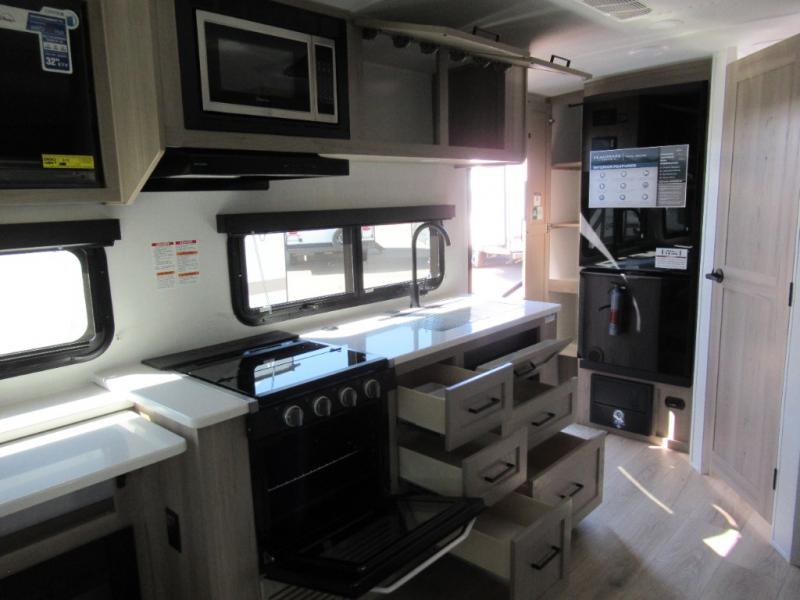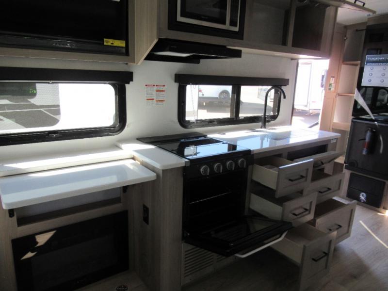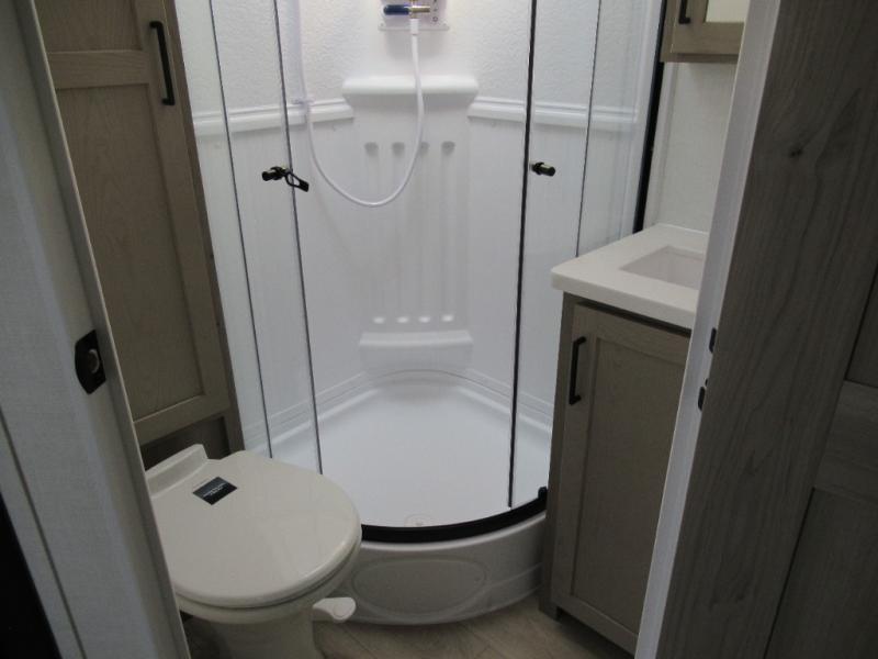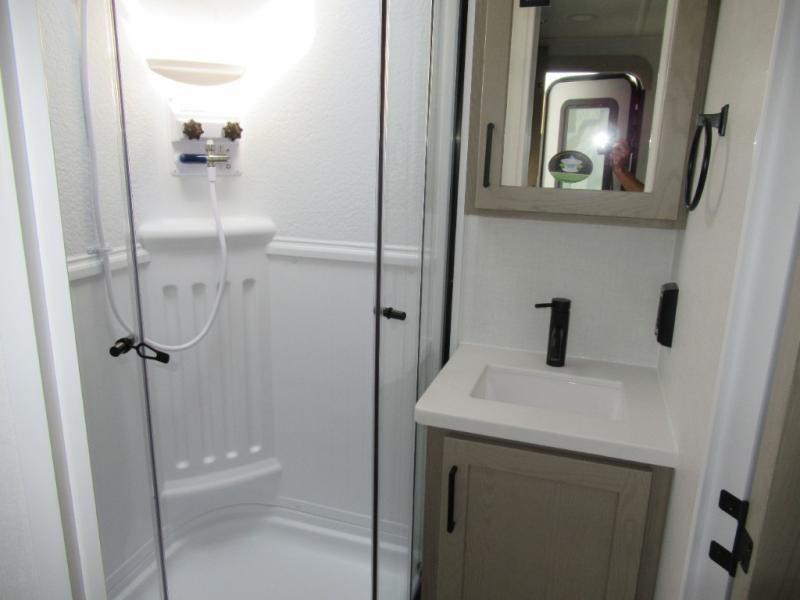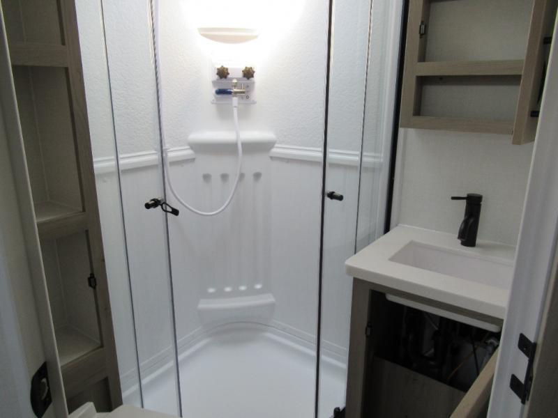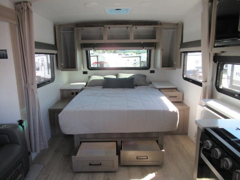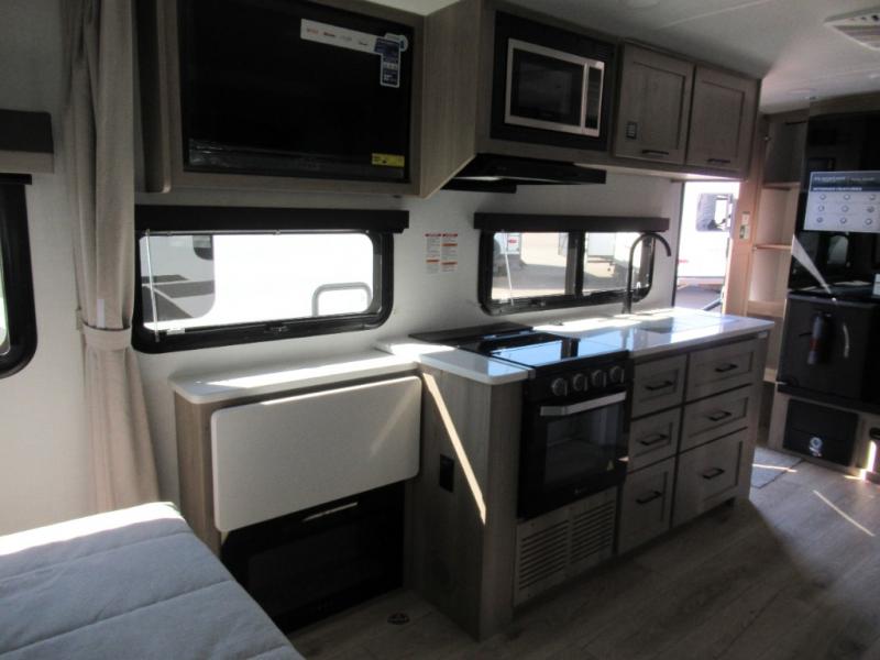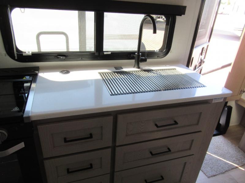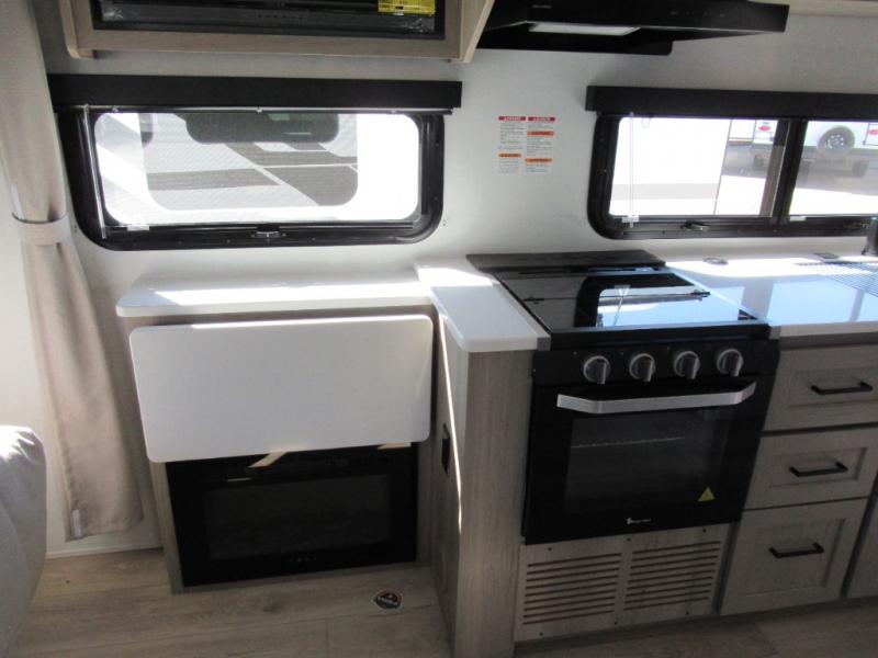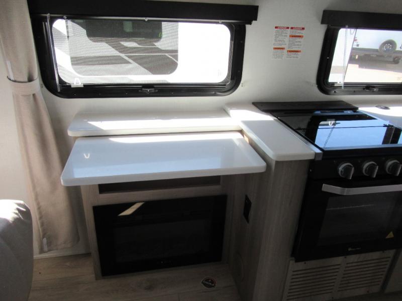 With any Flagstaff Micro Lite travel trailer by Forest River you will enjoy lightweight towing, durable construction, and added interior comforts to make each trip memorable! Each model features RoadTech tire pressure monitoring, Dexter Torflex axles, and nitrogen-filled Goodyear endurance tires for smooth towing from home to campground. The 6-sided aluminum framed construction provides a strong foundation so you can enjoy your RV for years to come, plus the radiant foil in the front cap, underbelly and slides help insulate your trailer. Additional exterior features include a 200W solar panel, back-up camera prep, frameless windows, and slam baggage doors. Each model includes the Great Expectations Package with roller shades, solid surface kitchen countertops, and hidden hinge cabinet doors. There is also an exterior hot/cold water port, outside speakers, a power tongue jack and stabilizer jacks, plus many more conveniences.