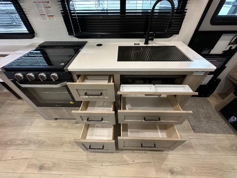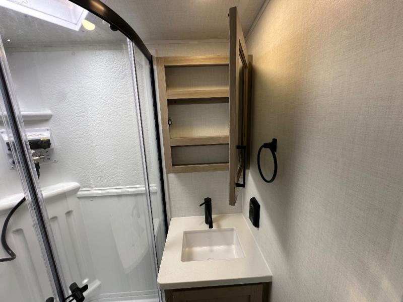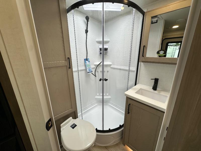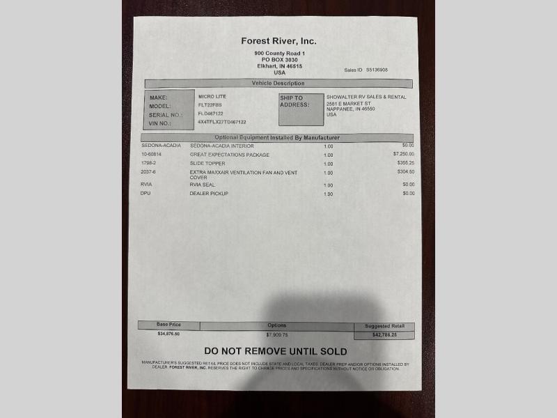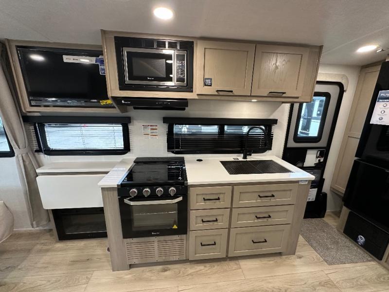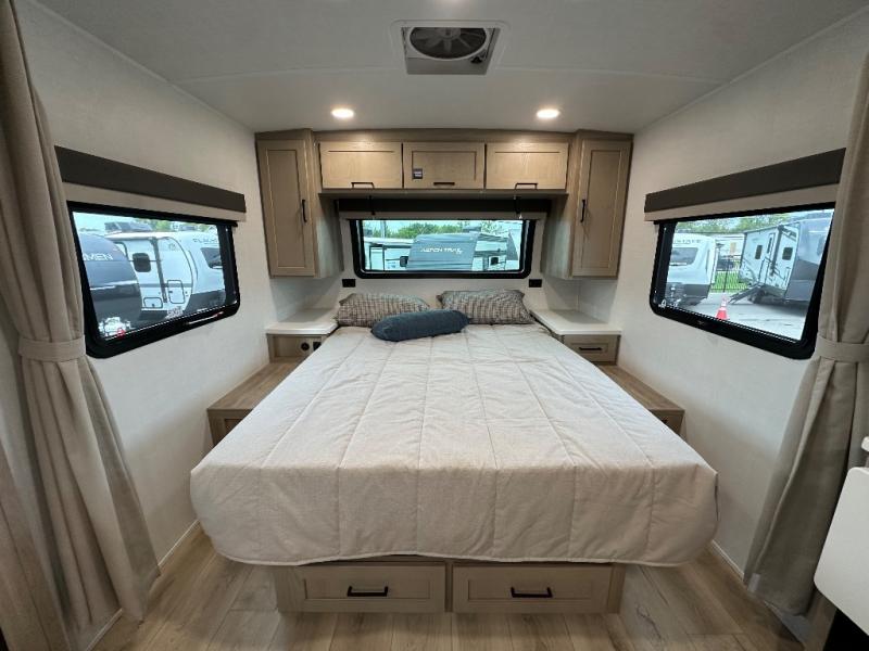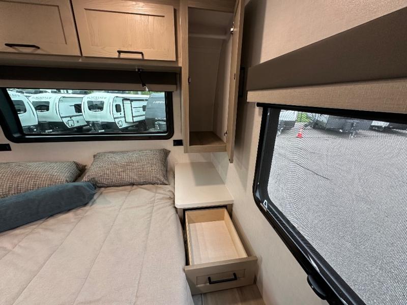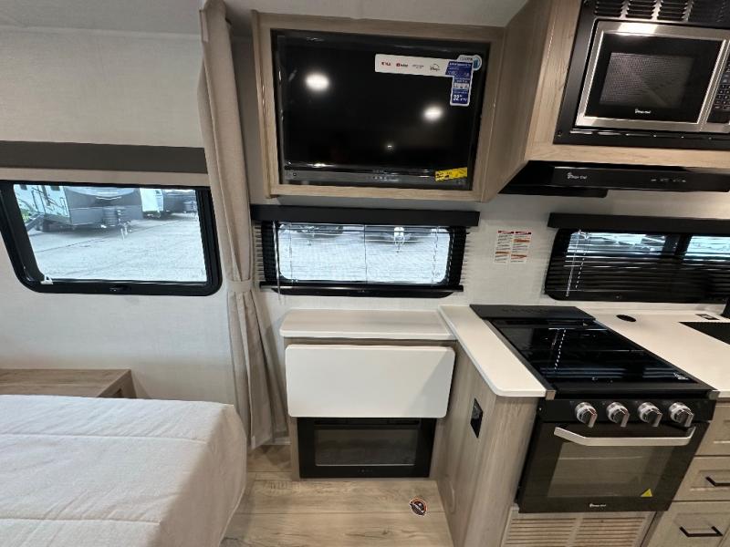 With any Flagstaff Micro Lite travel trailer by Forest River you will enjoy lightweight towing, durable construction, and added interior comforts to make each trip memorable! Each model features RoadTech tire pressure monitoring, Dexter Torflex axles, and nitrogen-filled Goodyear endurance tires for smooth towing from home to campground. The 6-sided aluminum framed construction provides a strong foundation so you can enjoy your RV for years to come, plus the radiant foil in the front cap, underbelly and slides help insulate your trailer. Additional exterior features include a 200W solar panel, back-up camera prep, frameless windows, and slam baggage doors. Each model includes the Great Expectations Package with roller shades, solid surface kitchen countertops, and hidden hinge cabinet doors. There is also an exterior hot/cold water port, outside speakers, a power tongue jack and stabilizer jacks, plus many more conveniences.