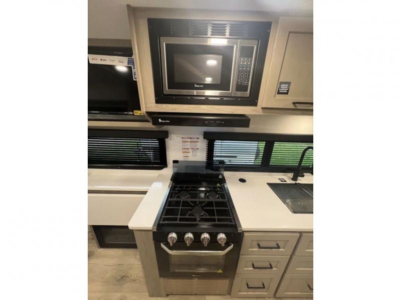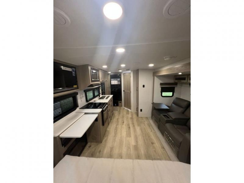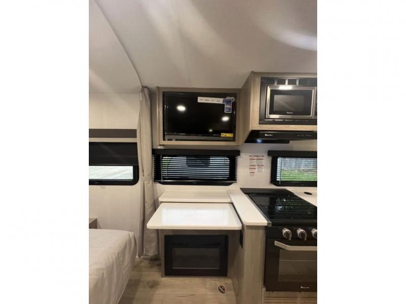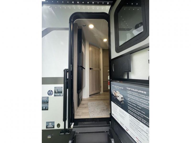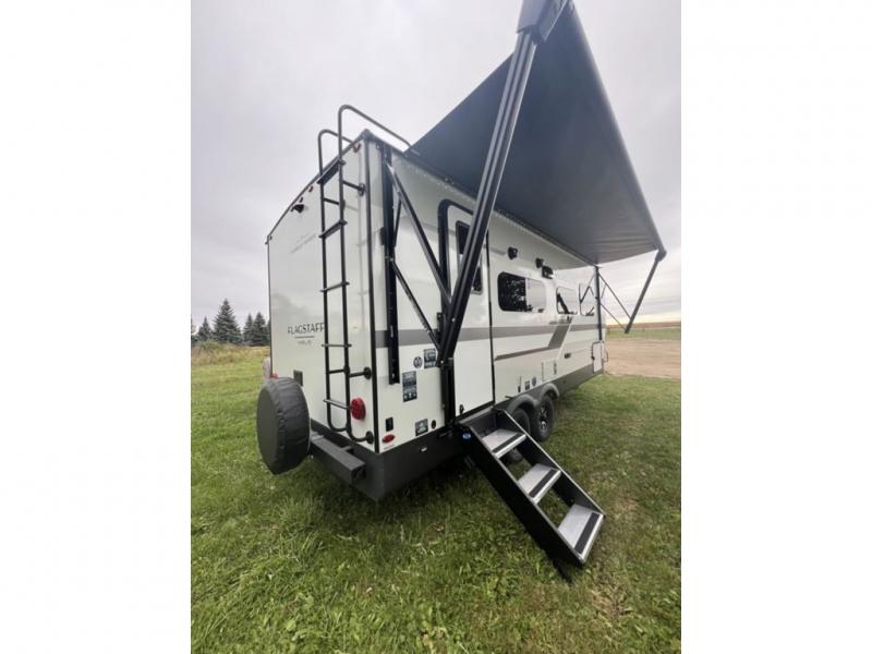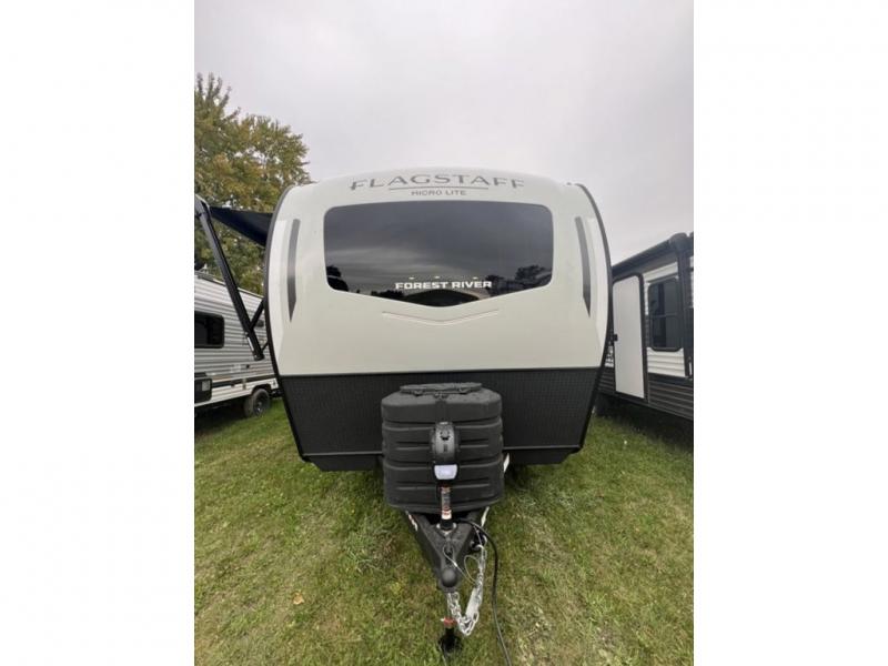 With any Flagstaff Micro Lite travel trailer by Forest River you will enjoy lightweight towing, durable construction, and added interior comforts to make each trip memorable! Each model features RoadTech tire pressure monitoring, Dexter Torflex axles, and nitrogen-filled Goodyear endurance tires for smooth towing from home to campground. The 6-sided aluminum framed construction provides a strong foundation so you can enjoy your RV for years to come, plus the radiant foil in the front cap, underbelly and slides help insulate your trailer. Additional exterior features include a 200W solar panel, back-up camera prep, frameless windows, and slam baggage doors. Each model includes the Great Expectations Package with roller shades, solid surface kitchen countertops, and hidden hinge cabinet doors. There is also an exterior hot/cold water port, outside speakers, a power tongue jack and stabilizer jacks, plus many more conveniences.
