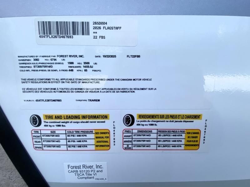 New 2026 Forest River RV Flagstaff Micro Lite 22FBS Travel Trailer