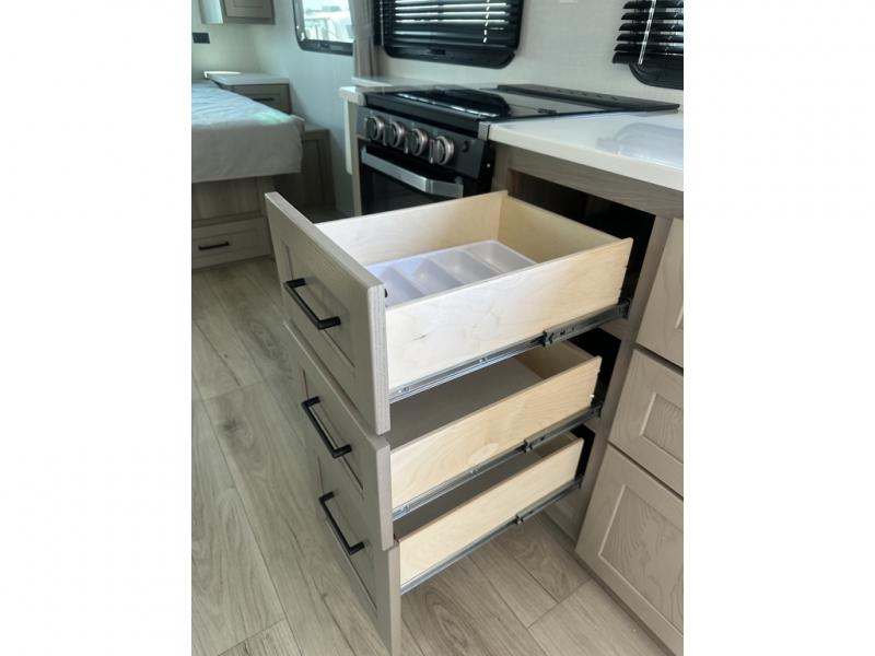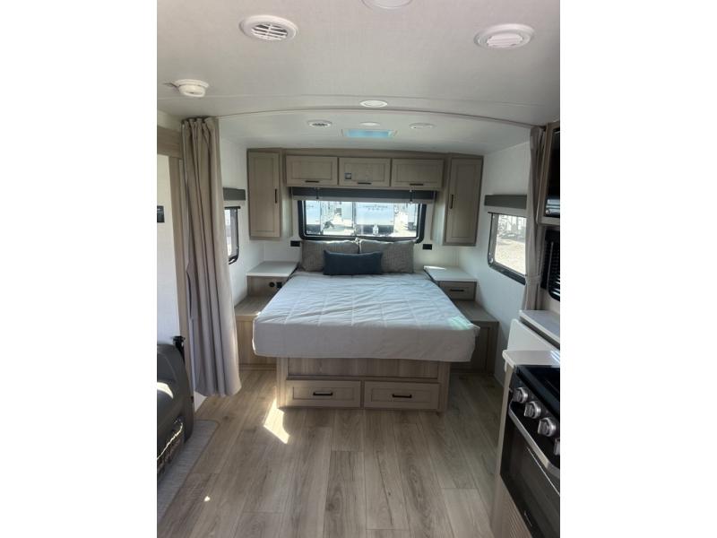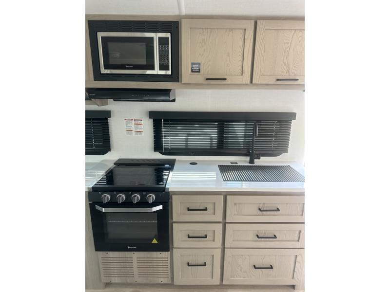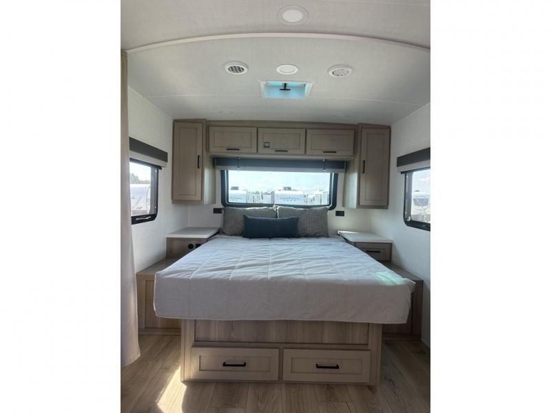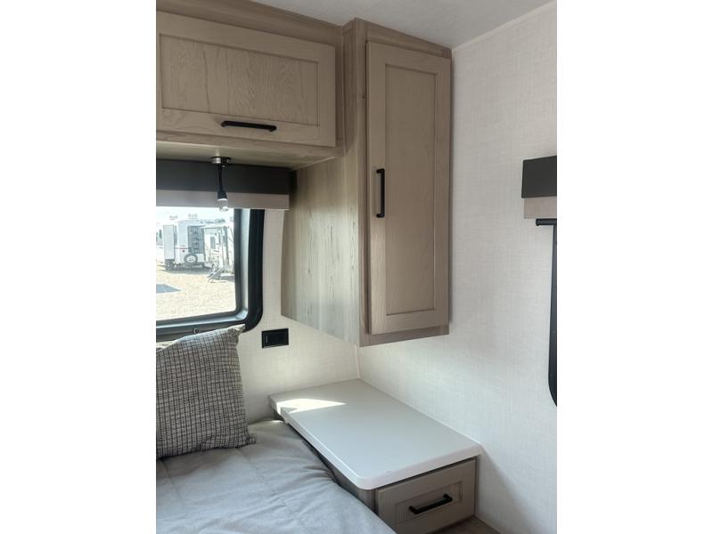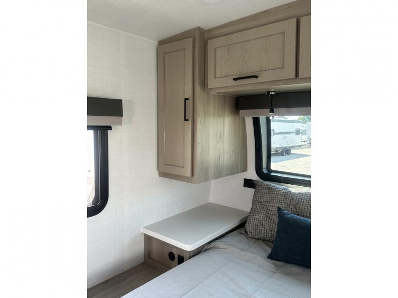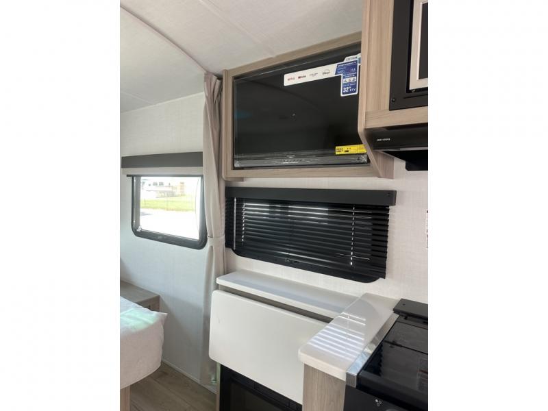 With any Flagstaff Micro Lite travel trailer by Forest River you will enjoy lightweight towing, durable construction, and added interior comforts to make each trip memorable! Each model features RoadTech tire pressure monitoring, Dexter Torflex axles, and nitrogen-filled Goodyear endurance tires for smooth towing from home to campground. The 6-sided aluminum framed construction provides a strong foundation so you can enjoy your RV for years to come, plus the radiant foil in the front cap, underbelly and slides help insulate your trailer. Additional exterior features include a 200W solar panel, back-up camera prep, frameless windows, and slam baggage doors. Each model includes the Great Expectations Package with roller shades, solid surface kitchen countertops, and hidden hinge cabinet doors. There is also an exterior hot/cold water port, outside speakers, a power tongue jack and stabilizer jacks, plus many more conveniences.