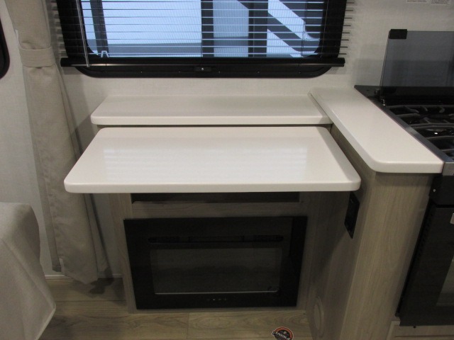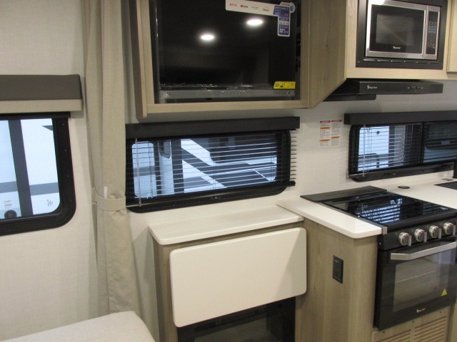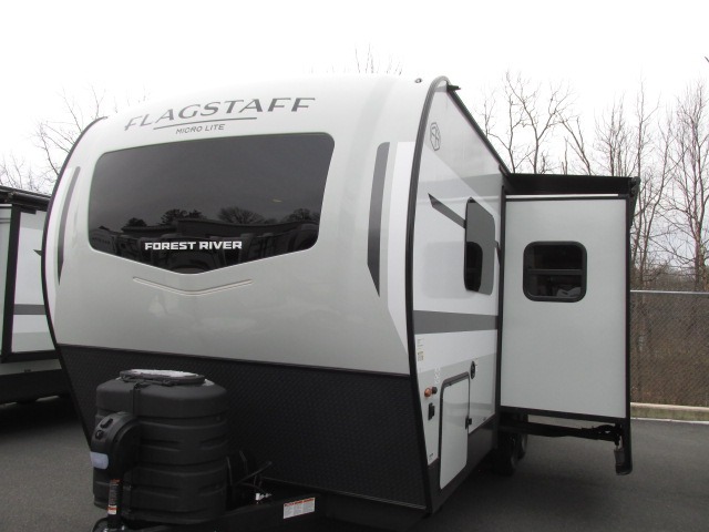 With any Flagstaff Micro Lite travel trailer by Forest River you will enjoy lightweight towing, durable construction, and added interior comforts to make each trip memorable! Each model features RoadTech tire pressure monitoring, Dexter Torflex axles, and nitrogen-filled Goodyear endurance tires for smooth towing from home to campground. The 6-sided aluminum framed construction provides a strong foundation so you can enjoy your RV for years to come, plus the radiant foil in the front cap, underbelly and slides help insulate your trailer. Additional exterior features include a 200W solar panel, back-up camera prep, frameless windows, and slam baggage doors. Each model includes the Great Expectations Package with roller shades, solid surface kitchen countertops, and hidden hinge cabinet doors. There is also an exterior hot/cold water port, outside speakers, a power tongue jack and stabilizer jacks, plus many more conveniences.