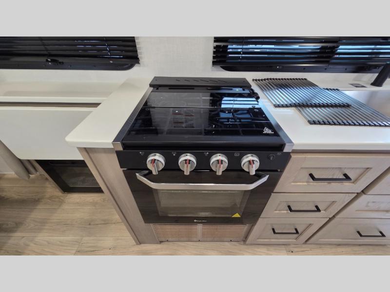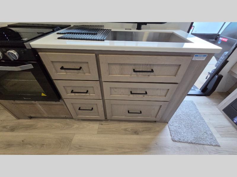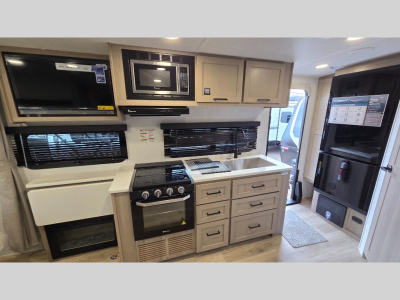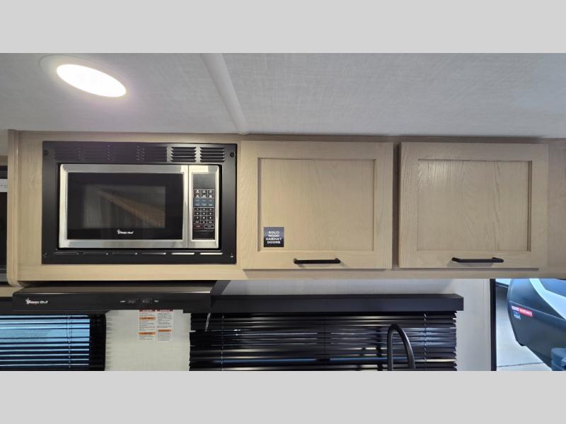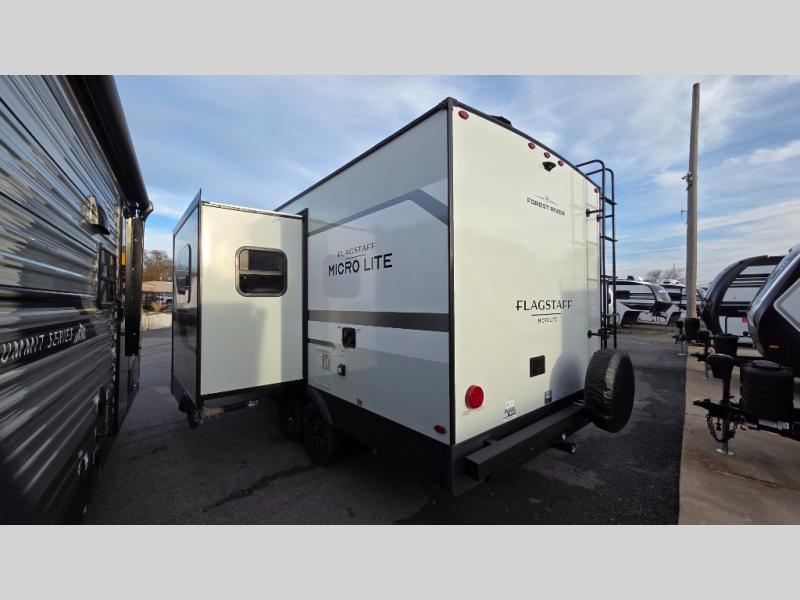 With any Flagstaff Micro Lite travel trailer by Forest River you will enjoy lightweight towing, durable construction, and added interior comforts to make each trip memorable! Each model features RoadTech tire pressure monitoring, Dexter Torflex axles, and nitrogen-filled Goodyear endurance tires for smooth towing from home to campground. The 6-sided aluminum framed construction provides a strong foundation so you can enjoy your RV for years to come, plus the radiant foil in the front cap, underbelly and slides help insulate your trailer. Additional exterior features include a 200W solar panel, back-up camera prep, frameless windows, and slam baggage doors. Each model includes the Great Expectations Package with roller shades, solid surface kitchen countertops, and hidden hinge cabinet doors. There is also an exterior hot/cold water port, outside speakers, a power tongue jack and stabilizer jacks, plus many more conveniences.