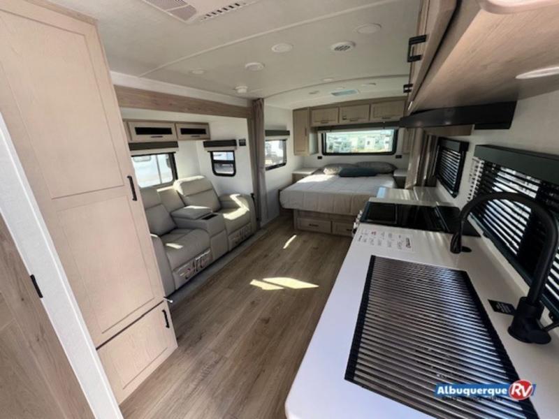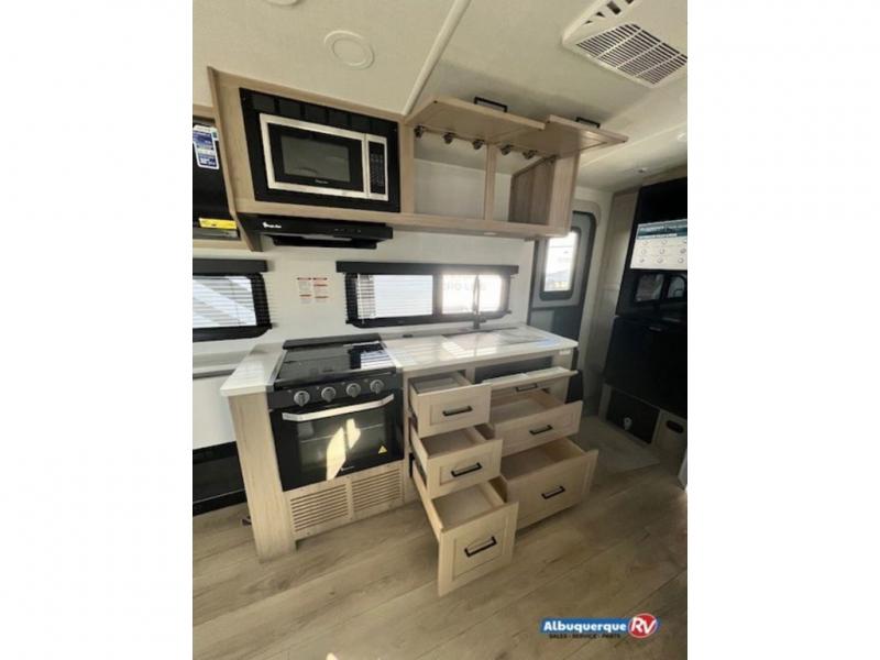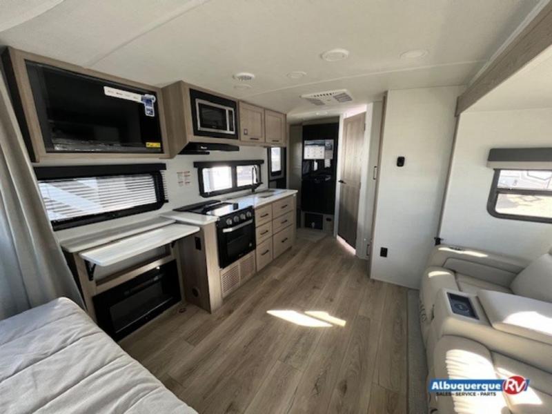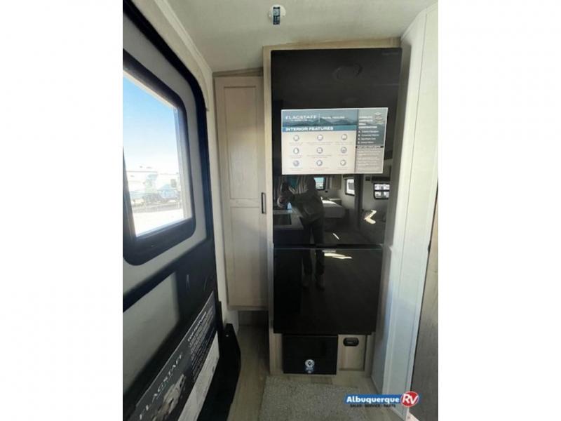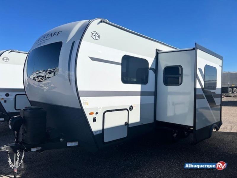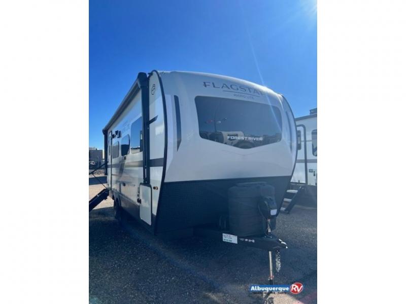 With any Flagstaff Micro Lite travel trailer by Forest River you will enjoy lightweight towing, durable construction, and added interior comforts to make each trip memorable! Each model features RoadTech tire pressure monitoring, Dexter Torflex axles, and nitrogen-filled Goodyear endurance tires for smooth towing from home to campground. The 6-sided aluminum framed construction provides a strong foundation so you can enjoy your RV for years to come, plus the radiant foil in the front cap, underbelly and slides help insulate your trailer. Additional exterior features include a 200W solar panel, back-up camera prep, frameless windows, and slam baggage doors. Each model includes the Great Expectations Package with roller shades, solid surface kitchen countertops, and hidden hinge cabinet doors. There is also an exterior hot/cold water port, outside speakers, a power tongue jack and stabilizer jacks, plus many more conveniences.
