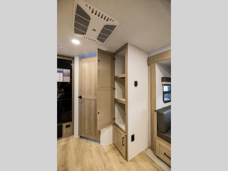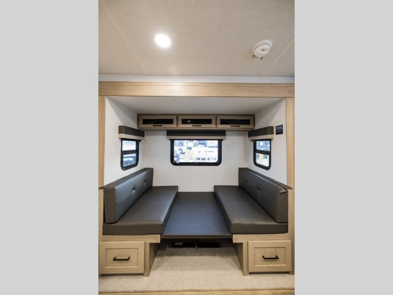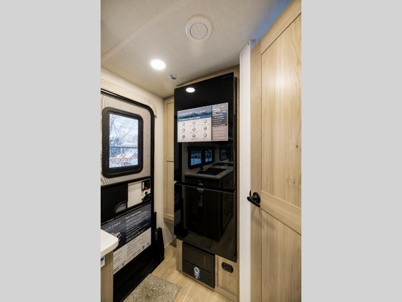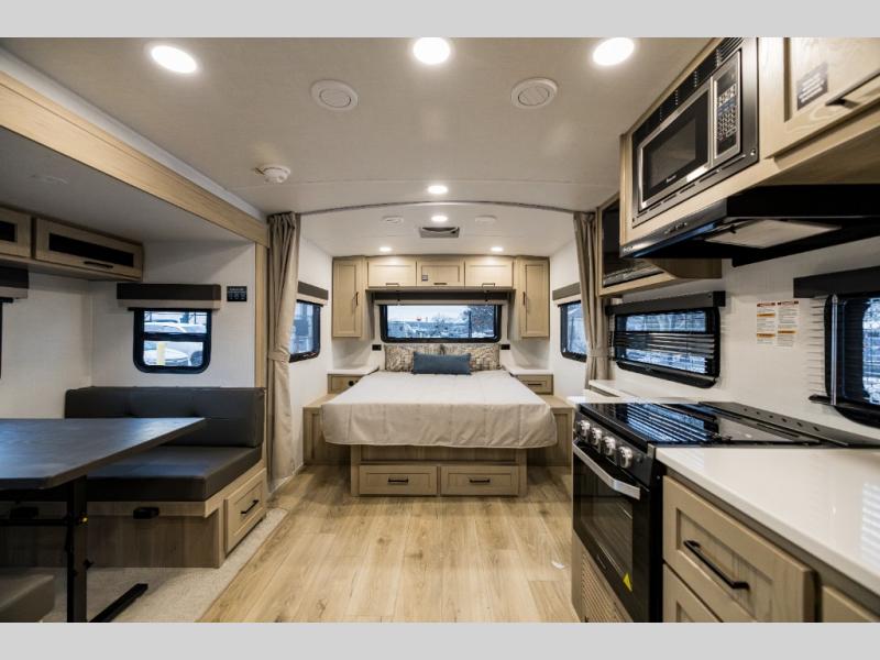 With any Flagstaff Micro Lite travel trailer by Forest River you will enjoy lightweight towing, durable construction, and added interior comforts to make each trip memorable! Each model features RoadTech tire pressure monitoring, Dexter Torflex axles, and nitrogen-filled Goodyear endurance tires for smooth towing from home to campground. The 6-sided aluminum framed construction provides a strong foundation so you can enjoy your RV for years to come, plus the radiant foil in the front cap, underbelly and slides help insulate your trailer. Additional exterior features include a 200W solar panel, back-up camera prep, frameless windows, and slam baggage doors. Each model includes the Great Expectations Package with roller shades, solid surface kitchen countertops, and hidden hinge cabinet doors. There is also an exterior hot/cold water port, outside speakers, a power tongue jack and stabilizer jacks, plus many more conveniences.