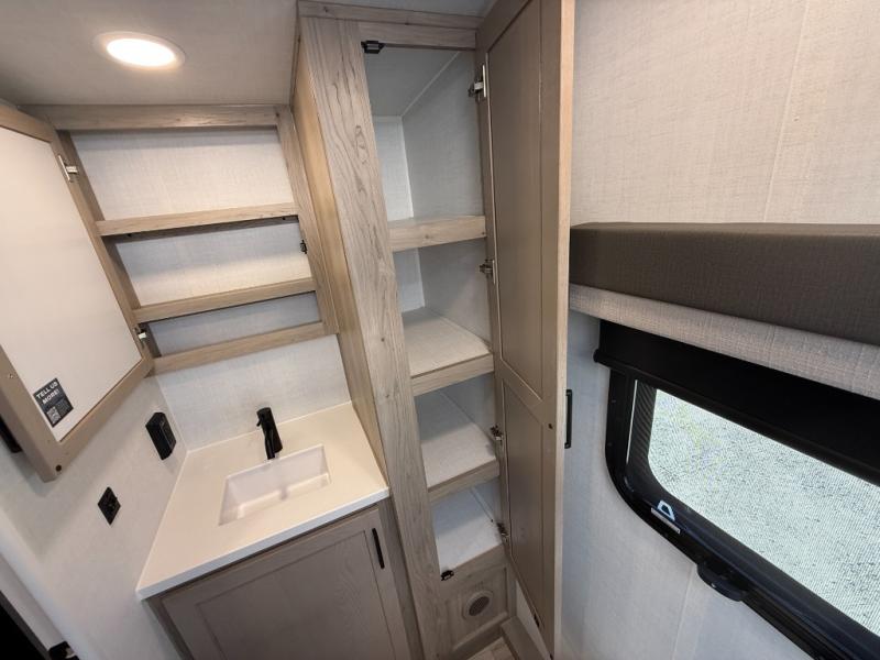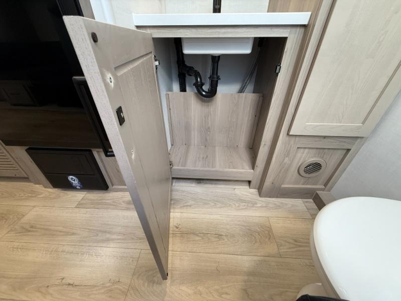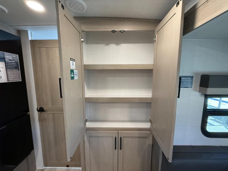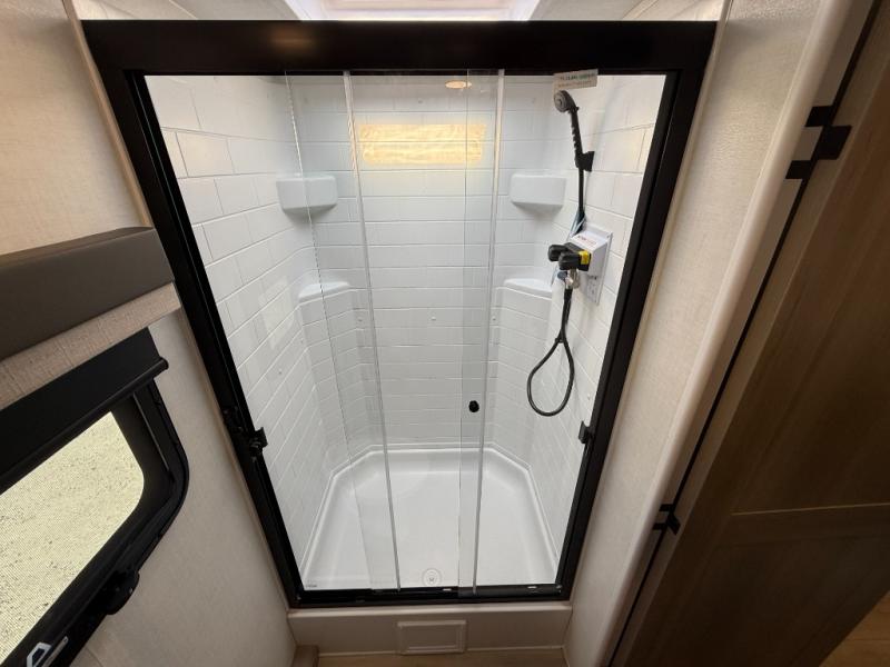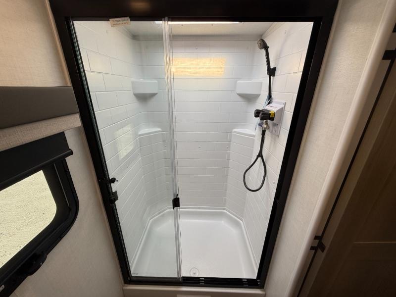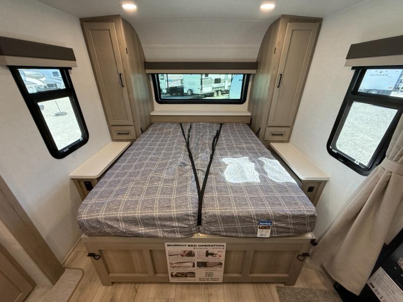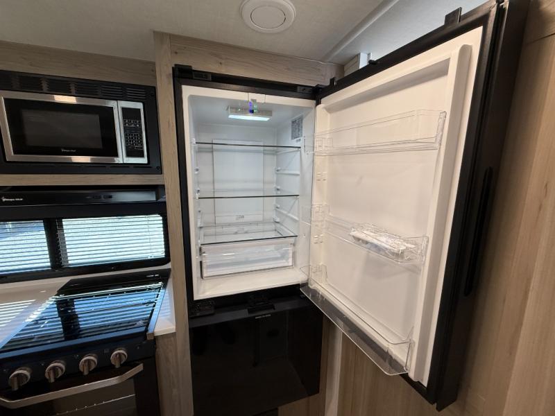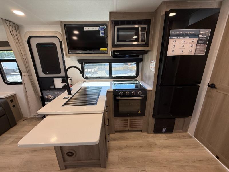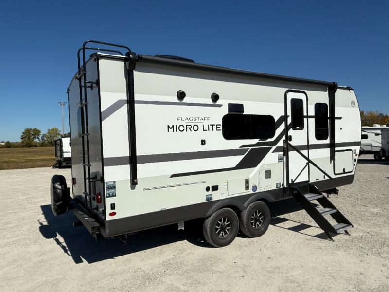 With any Flagstaff Micro Lite travel trailer by Forest River you will enjoy lightweight towing, durable construction, and added interior comforts to make each trip memorable! Each model features RoadTech tire pressure monitoring, Dexter Torflex axles, and nitrogen-filled Goodyear endurance tires for smooth towing from home to campground. The 6-sided aluminum framed construction provides a strong foundation so you can enjoy your RV for years to come, plus the radiant foil in the front cap, underbelly and slides help insulate your trailer. Additional exterior features include a 200W solar panel, back-up camera prep, frameless windows, and slam baggage doors. Each model includes the Great Expectations Package with roller shades, solid surface kitchen countertops, and hidden hinge cabinet doors. There is also an exterior hot/cold water port, outside speakers, a power tongue jack and stabilizer jacks, plus many more conveniences.