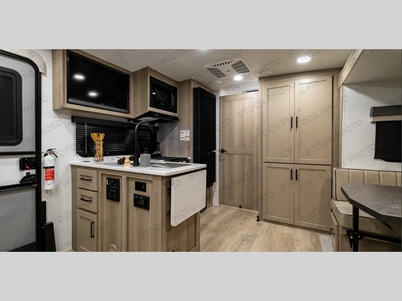 With any Flagstaff Micro Lite travel trailer by Forest River you will enjoy lightweight towing, durable construction, and added interior comforts to make each trip memorable! Each model features RoadTech tire pressure monitoring, Dexter Torflex axles, and nitrogen-filled Goodyear endurance tires for smooth towing from home to campground. The 6-sided aluminum framed construction provides a strong foundation so you can enjoy your RV for years to come, plus the radiant foil in the front cap, underbelly and slides help insulate your trailer. Additional exterior features include a 200W solar panel, back-up camera prep, frameless windows, and slam baggage doors. Each model includes the Great Expectations Package with roller shades, solid surface kitchen countertops, and hidden hinge cabinet doors. There is also an exterior hot/cold water port, outside speakers, a power tongue jack and stabilizer jacks, plus many more conveniences.