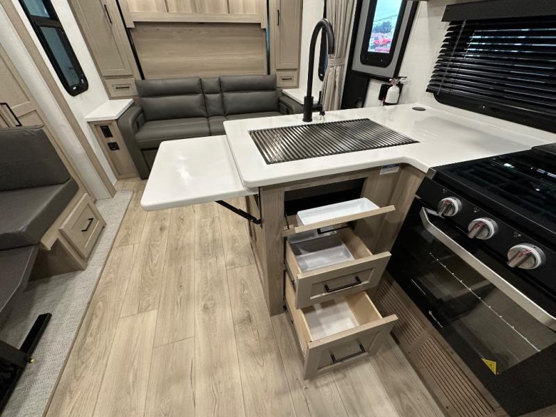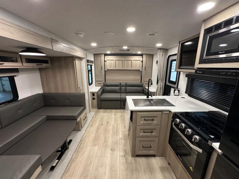 With any Flagstaff Micro Lite travel trailer by Forest River you will enjoy lightweight towing, durable construction, and added interior comforts to make each trip memorable! Each model features a torsion axle, Rubber-Ryde suspension, nitrogen filled, Goodyear Endurance tires, and easy lube axles with Nev-R-Adjust brakes for smooth towing from home to campground. The 6-sided aluminum framed construction provides a strong foundation so you can enjoy your RV for years to come, plus electronically controlled heated holding tanks and an enclosed underbelly will let you camp all year long. Head inside to find hybrid woven flooring in the slide outs, Sedona wood cabinetry, solid surface kitchen countertops, and many more amenities. These travel trailers also include exterior conveniences for hassle-free camping, like the power tongue jack, magnetic compartment door catches, Keyed Alike locks, and rear ladder to name a few!