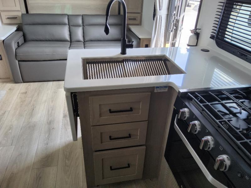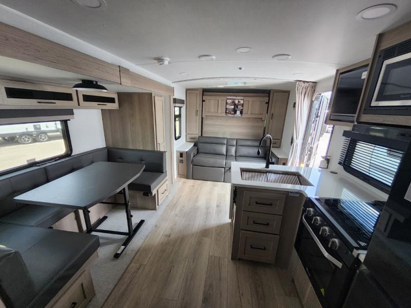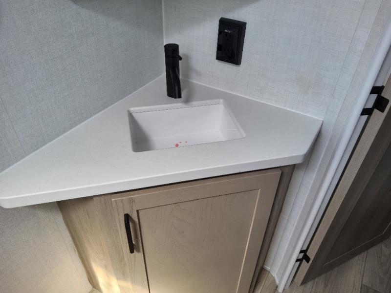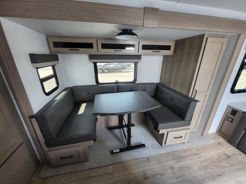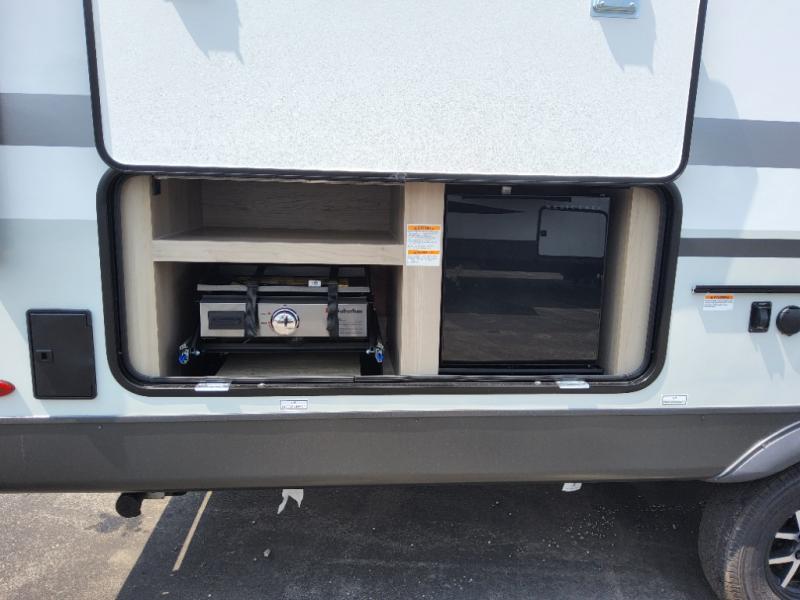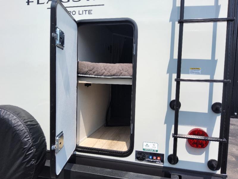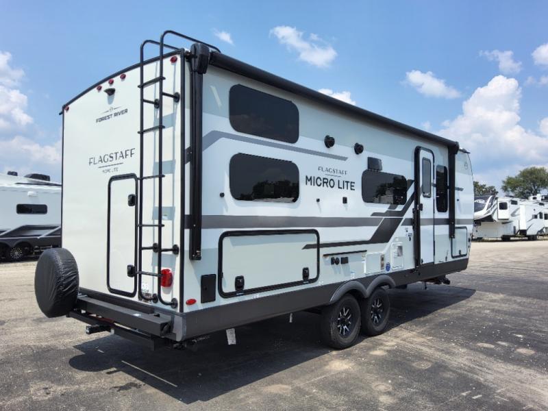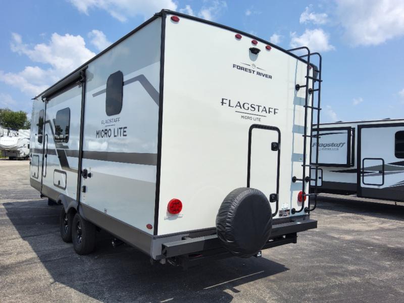 With any Flagstaff Micro Lite travel trailer by Forest River you will enjoy lightweight towing, durable construction, and added interior comforts to make each trip memorable! Each model features RoadTech tire pressure monitoring, Dexter Torflex axles, and nitrogen-filled Goodyear endurance tires for smooth towing from home to campground. The 6-sided aluminum framed construction provides a strong foundation so you can enjoy your RV for years to come, plus the radiant foil in the front cap, underbelly and slides help insulate your trailer. Additional exterior features include a 200W solar panel, back-up camera prep, frameless windows, and slam baggage doors. Each model includes the Great Expectations Package with roller shades, solid surface kitchen countertops, and hidden hinge cabinet doors. There is also an exterior hot/cold water port, outside speakers, a power tongue jack and stabilizer jacks, plus many more conveniences.