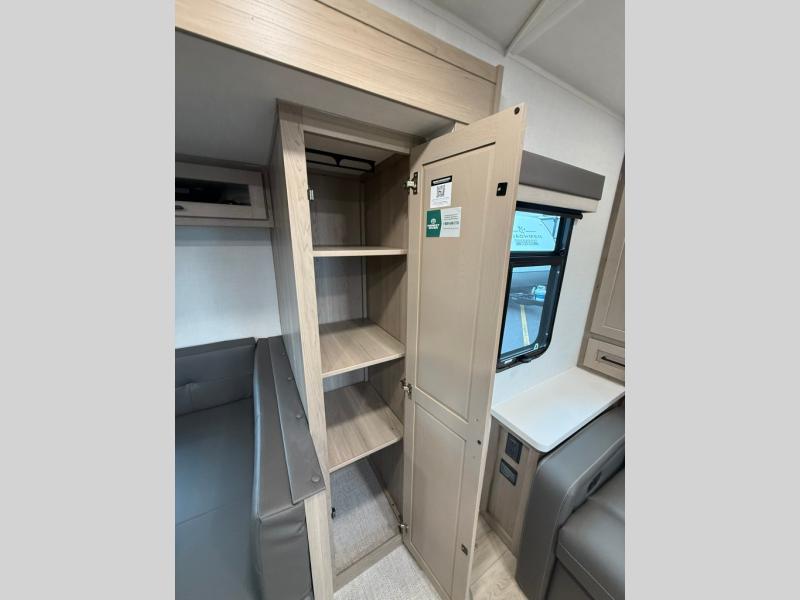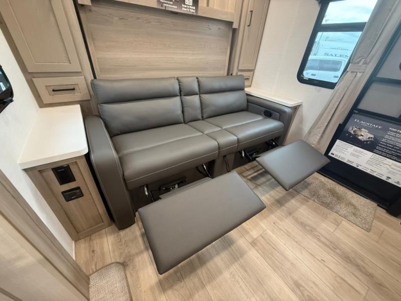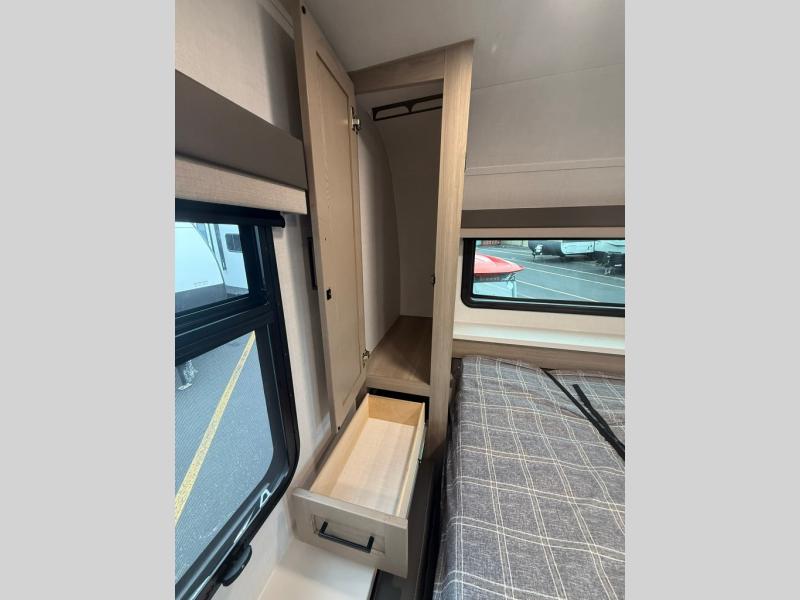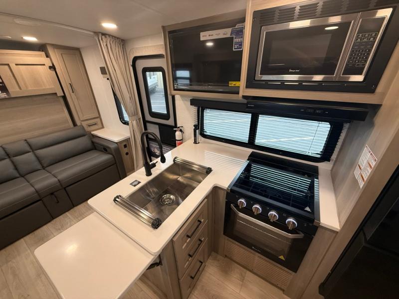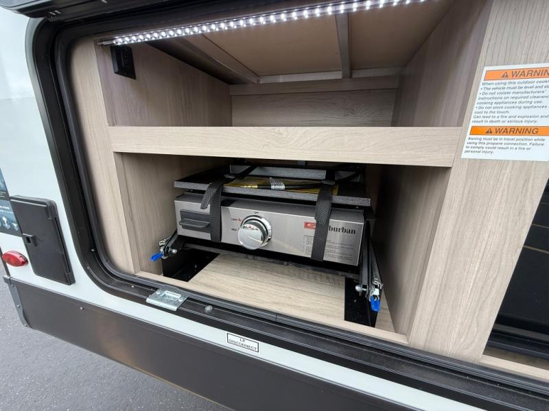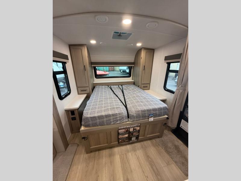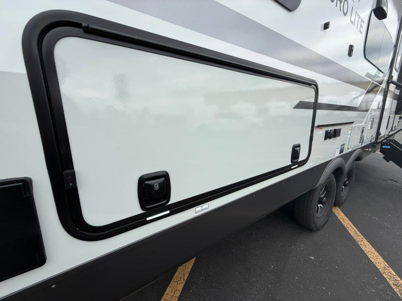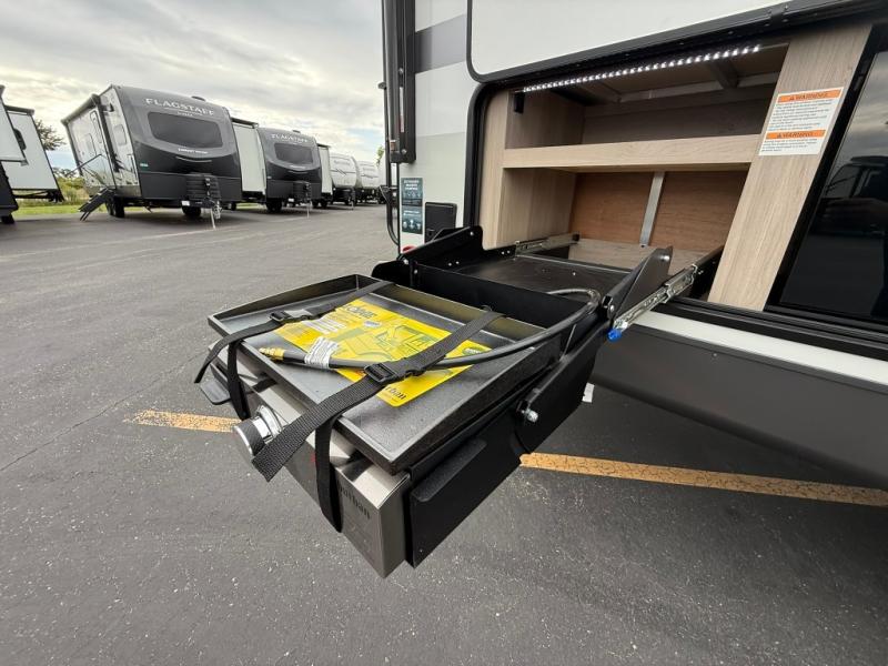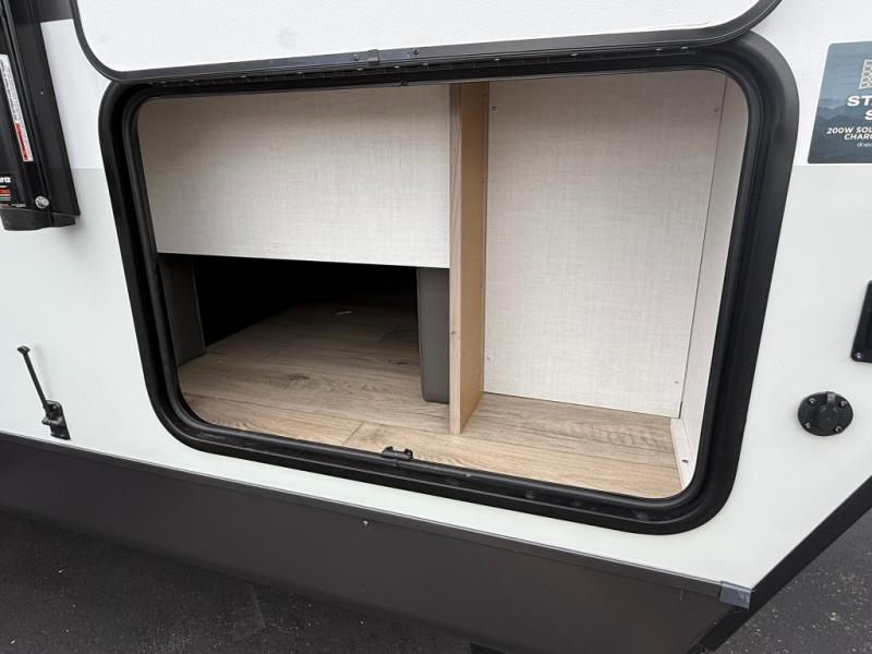 With any Flagstaff Micro Lite travel trailer by Forest River you will enjoy lightweight towing, durable construction, and added interior comforts to make each trip memorable! Each model features RoadTech tire pressure monitoring, Dexter Torflex axles, and nitrogen-filled Goodyear endurance tires for smooth towing from home to campground. The 6-sided aluminum framed construction provides a strong foundation so you can enjoy your RV for years to come, plus the radiant foil in the front cap, underbelly and slides help insulate your trailer. Additional exterior features include a 200W solar panel, back-up camera prep, frameless windows, and slam baggage doors. Each model includes the Great Expectations Package with roller shades, solid surface kitchen countertops, and hidden hinge cabinet doors. There is also an exterior hot/cold water port, outside speakers, a power tongue jack and stabilizer jacks, plus many more conveniences.