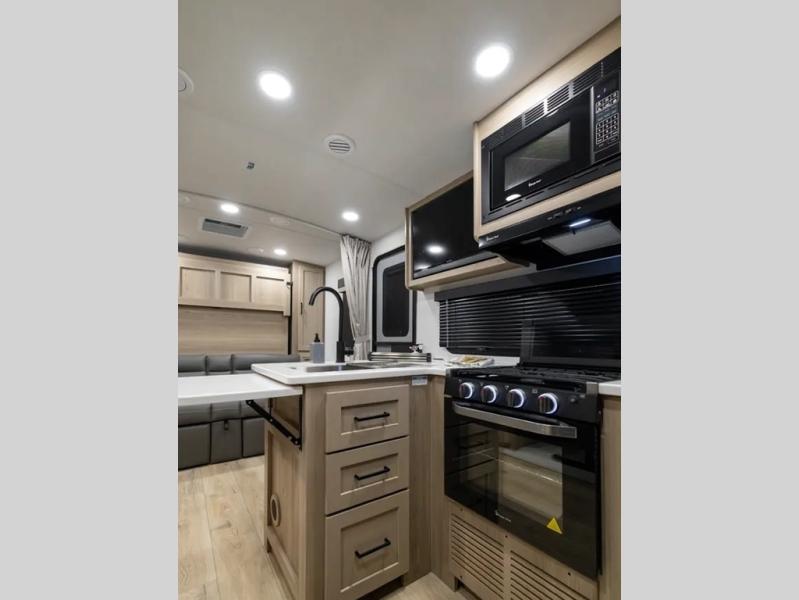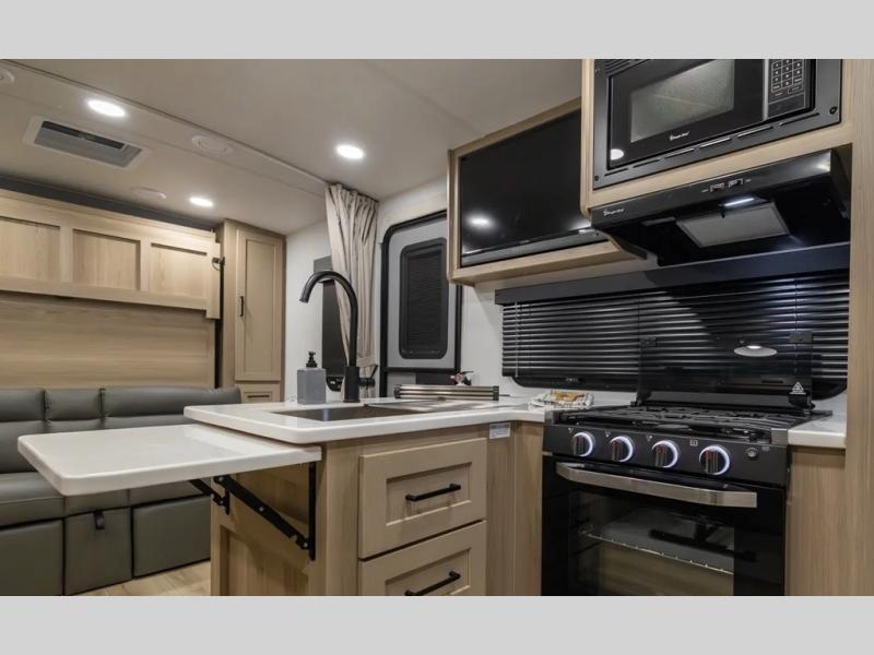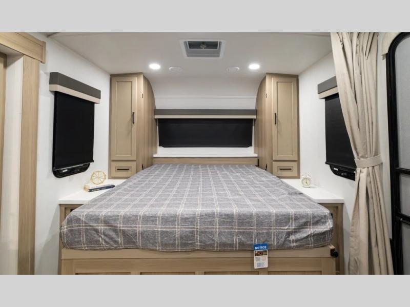 With any Flagstaff Micro Lite travel trailer by Forest River you will enjoy lightweight towing, durable construction, and added interior comforts to make each trip memorable! Each model features RoadTech tire pressure monitoring, Dexter Torflex axles, and nitrogen-filled Goodyear endurance tires for smooth towing from home to campground. The 6-sided aluminum framed construction provides a strong foundation so you can enjoy your RV for years to come, plus the radiant foil in the front cap, underbelly and slides help insulate your trailer. Additional exterior features include a 200W solar panel, back-up camera prep, frameless windows, and slam baggage doors. Each model includes the Great Expectations Package with roller shades, solid surface kitchen countertops, and hidden hinge cabinet doors. There is also an exterior hot/cold water port, outside speakers, a power tongue jack and stabilizer jacks, plus many more conveniences.