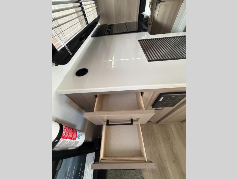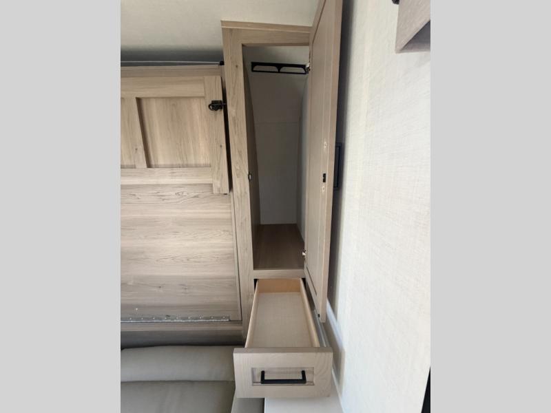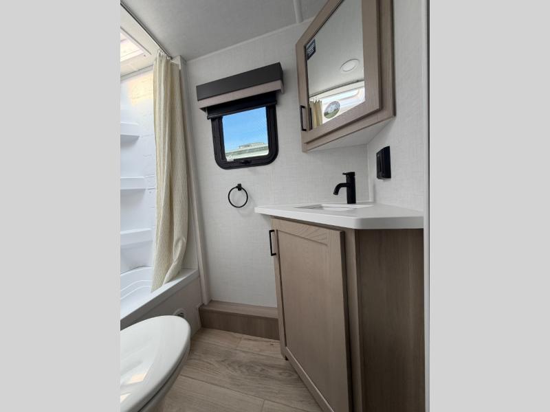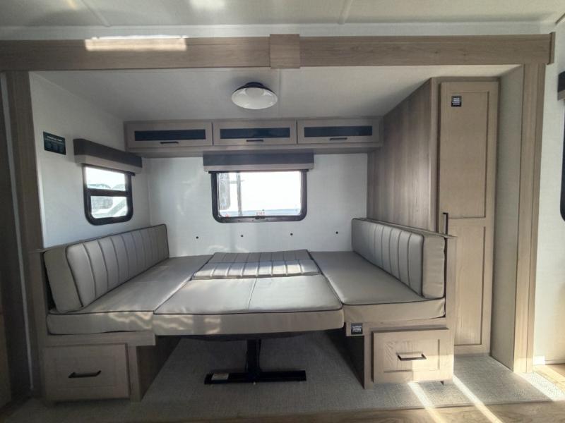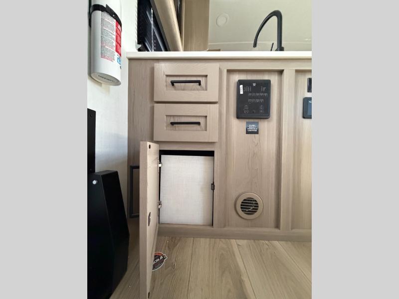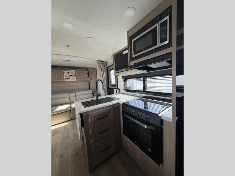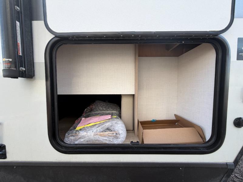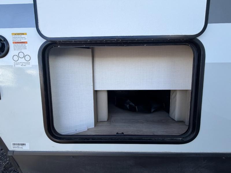 With any Flagstaff Micro Lite travel trailer by Forest River you will enjoy lightweight towing, durable construction, and added interior comforts to make each trip memorable! Each model features RoadTech tire pressure monitoring, Dexter Torflex axles, and nitrogen-filled Goodyear endurance tires for smooth towing from home to campground. The 6-sided aluminum framed construction provides a strong foundation so you can enjoy your RV for years to come, plus the radiant foil in the front cap, underbelly and slides help insulate your trailer. Additional exterior features include a 200W solar panel, back-up camera prep, frameless windows, and slam baggage doors. Each model includes the Great Expectations Package with roller shades, solid surface kitchen countertops, and hidden hinge cabinet doors. There is also an exterior hot/cold water port, outside speakers, a power tongue jack and stabilizer jacks, plus many more conveniences.