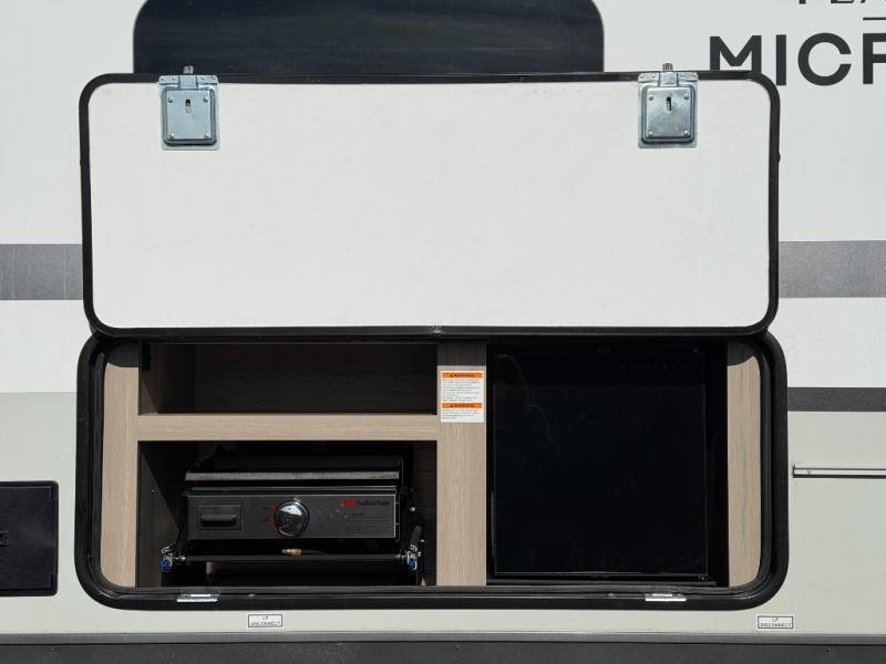 Load up your family of eight and head out to the campground of your choice with this Flagstaff Micro Lite travel trailer in tow! The kids will enjoy the double-size bunks so that they can invite their friends or cousins. This unit features a single slide with a U-shaped dinette so you can gather around for family game night. And the dinette can be replaced by an optional theater seat or optional hide-a-bed sofa, depending on your needs! Relax on the sofa and visit with friends before converting the sofa into a Murphy bed. And don't over look the exterior with its outside kitchen with a pull-out griddle, 18' power awning, pass-through storage, and more!