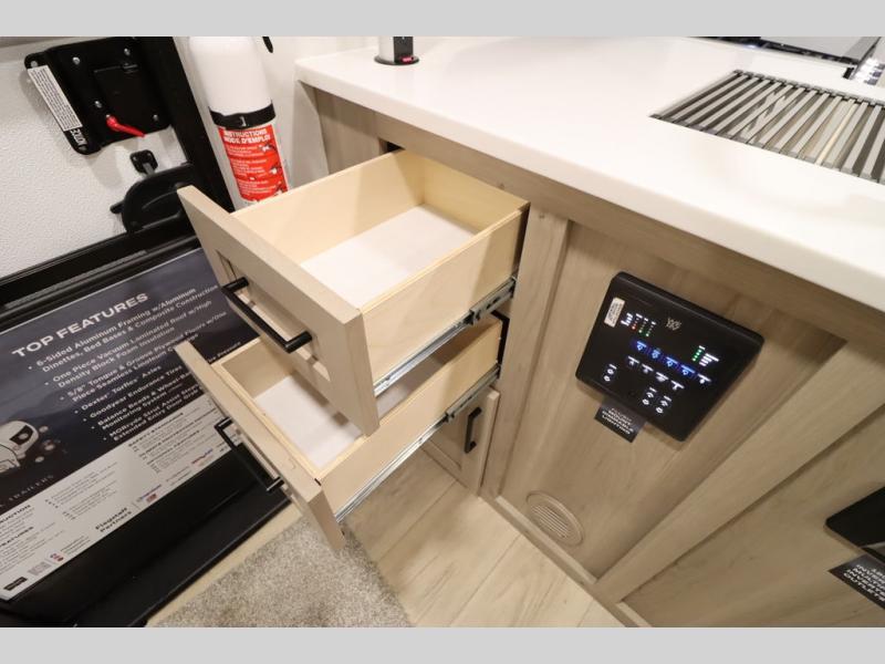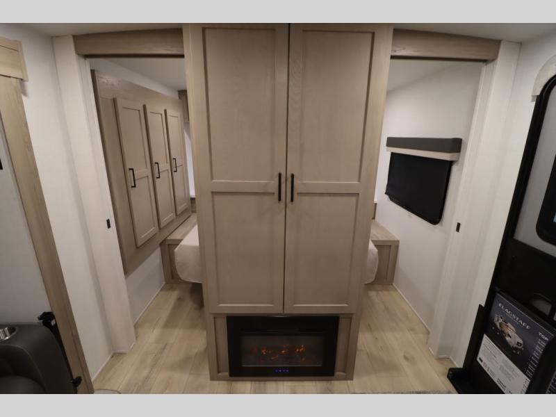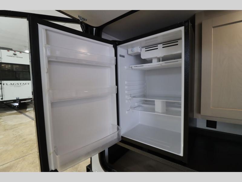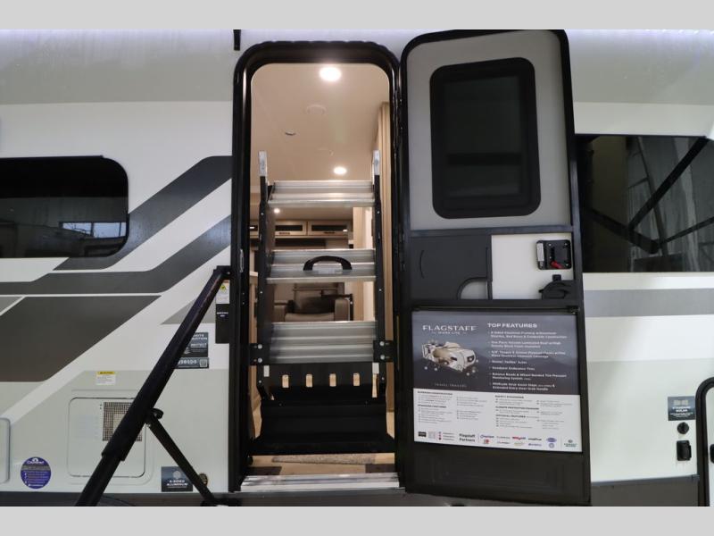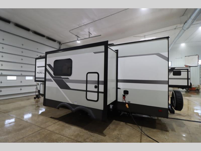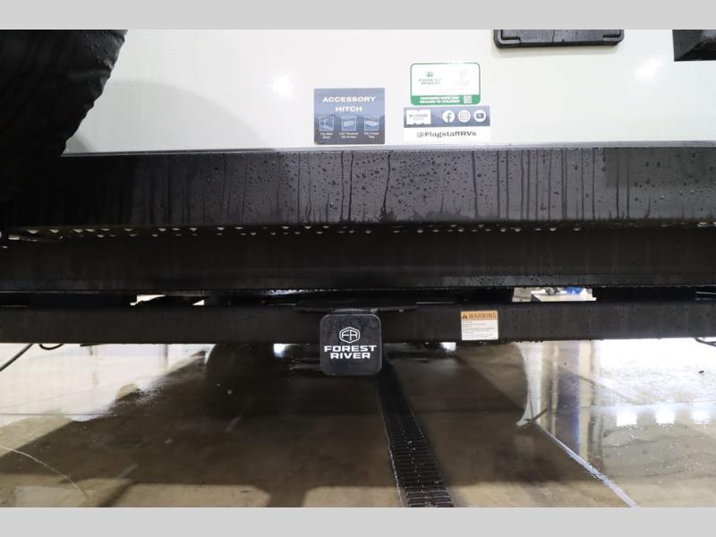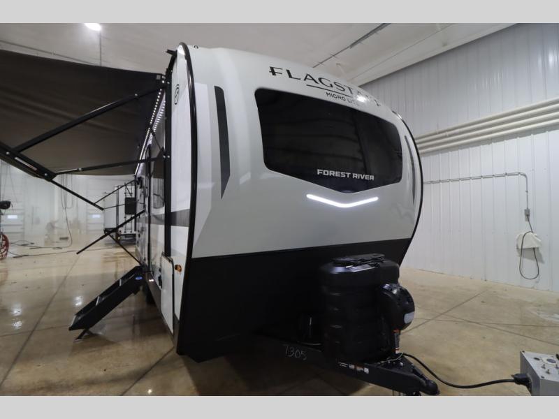 With any Flagstaff Micro Lite travel trailer by Forest River you will enjoy lightweight towing, durable construction, and added interior comforts to make each trip memorable! Each model features RoadTech tire pressure monitoring, Dexter Torflex axles, and nitrogen-filled Goodyear endurance tires for smooth towing from home to campground. The 6-sided aluminum framed construction provides a strong foundation so you can enjoy your RV for years to come, plus the radiant foil in the front cap, underbelly and slides help insulate your trailer. Additional exterior features include a 200W solar panel, back-up camera prep, frameless windows, and slam baggage doors. Each model includes the Great Expectations Package with roller shades, solid surface kitchen countertops, and hidden hinge cabinet doors. There is also an exterior hot/cold water port, outside speakers, a power tongue jack and stabilizer jacks, plus many more conveniences.
